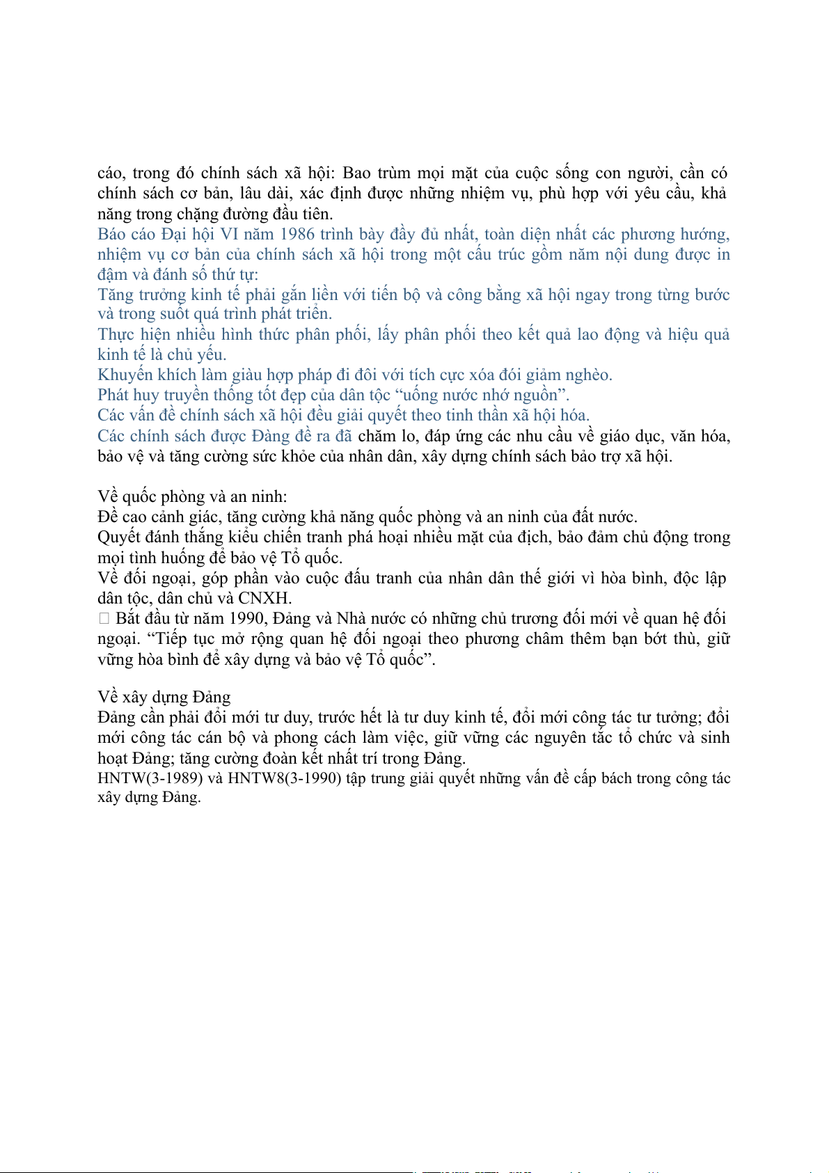Báo cáo Đại hội VI năm 1986 nêu rõ quan điểm vĩ mô về chính sách xã hội là báo