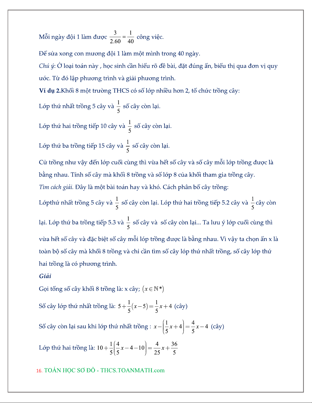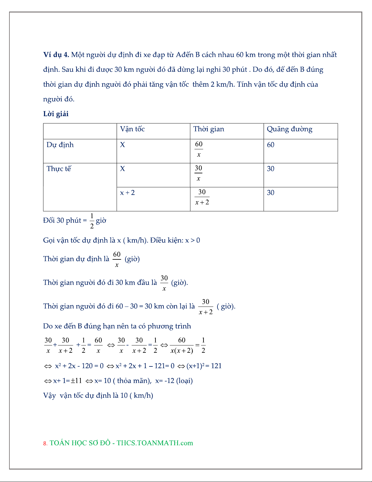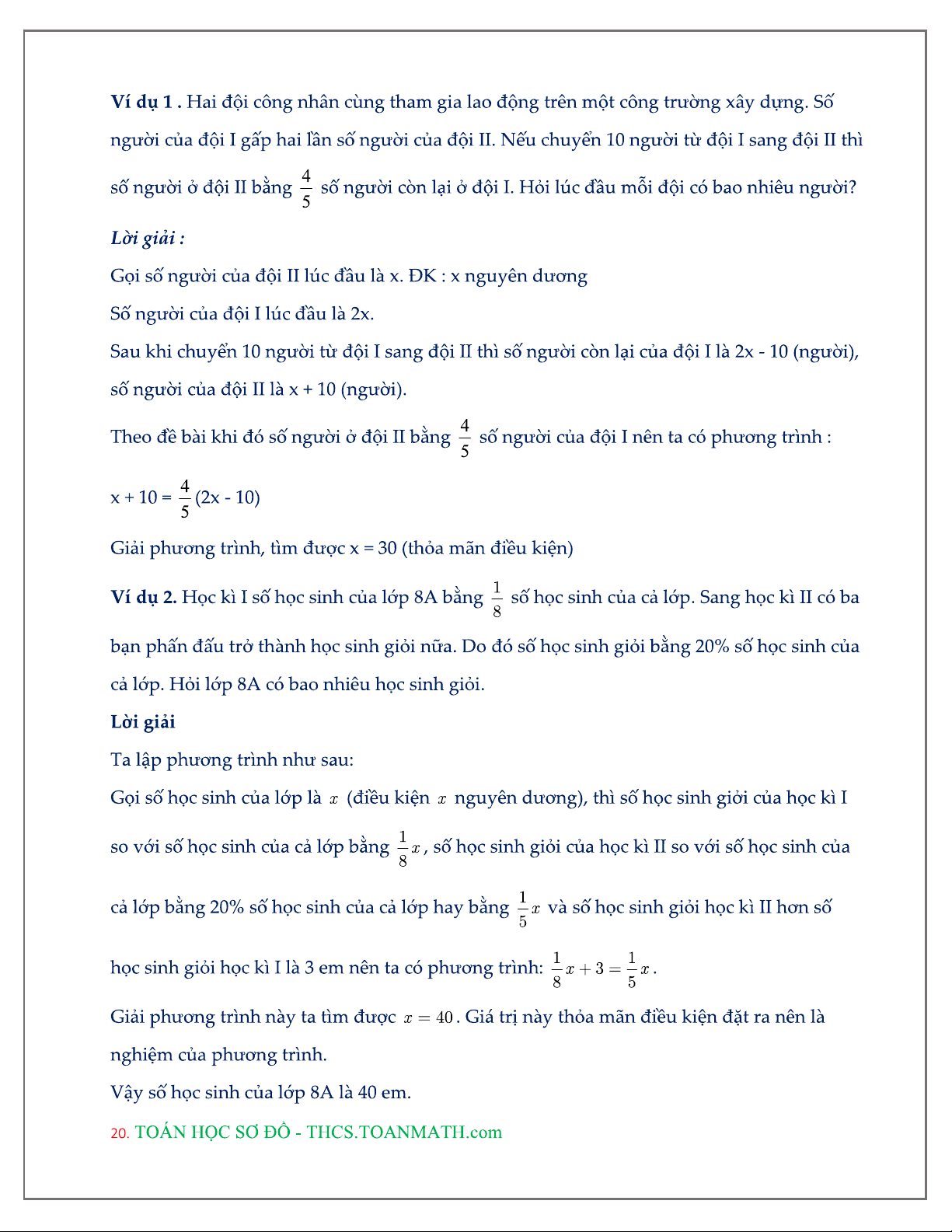 Đại số 8: Giải toán bằng cách lập phương trình môn Toán 9