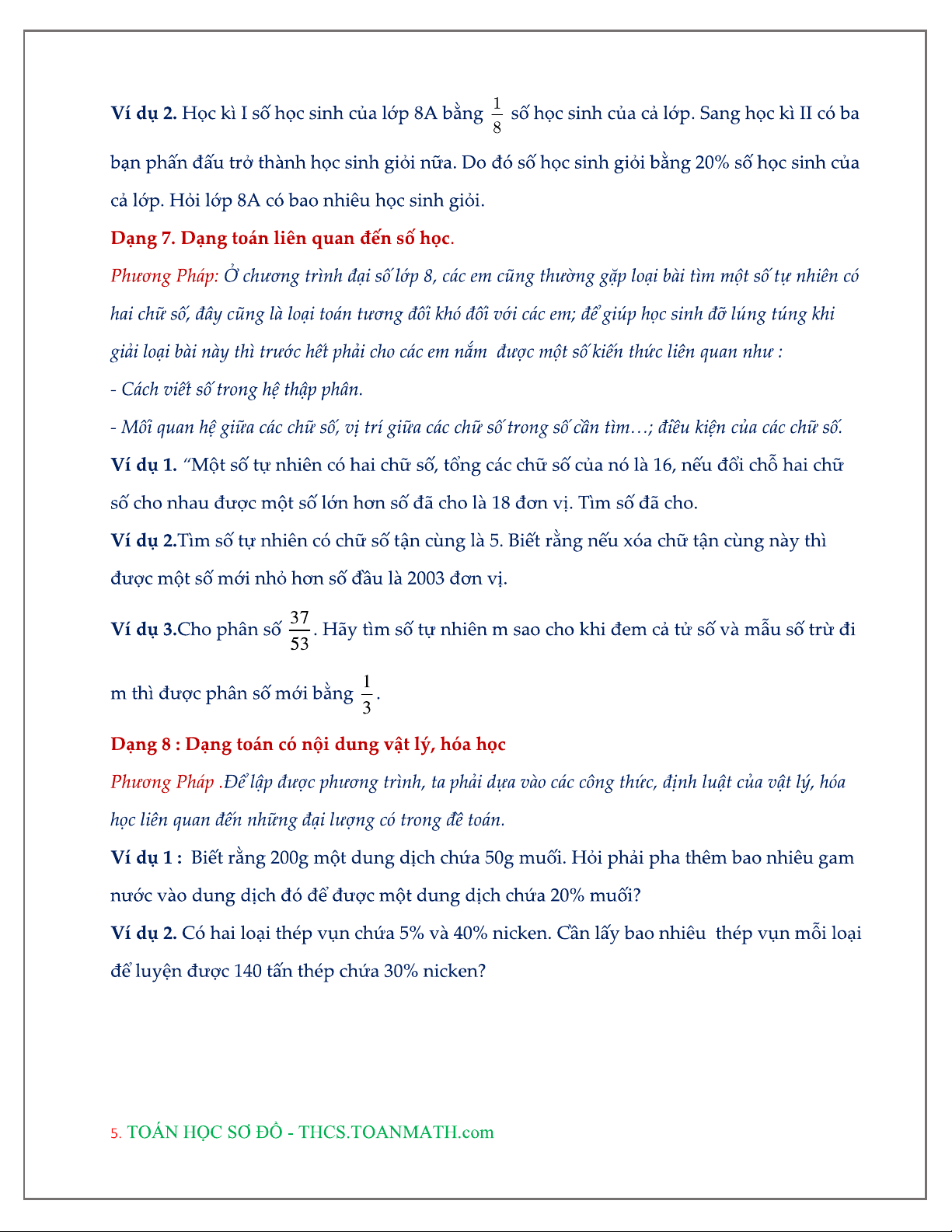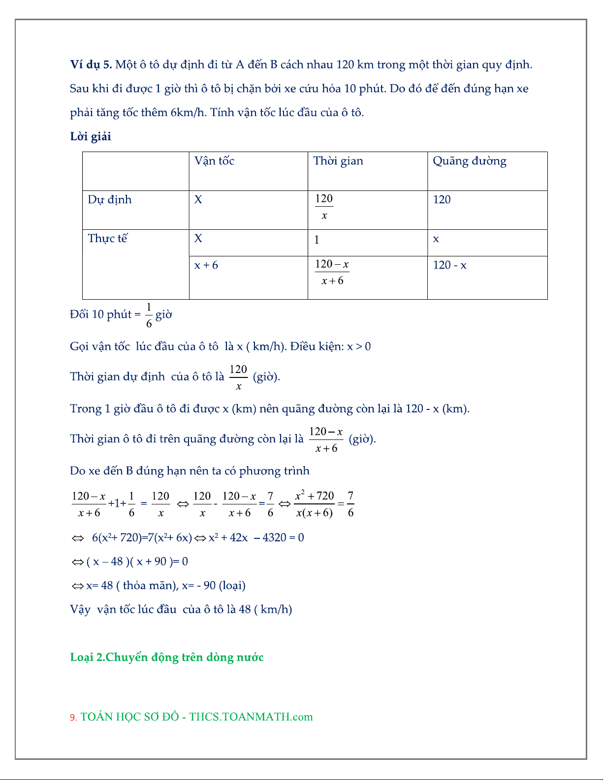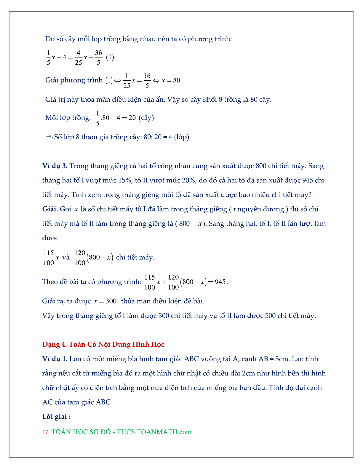 Đại số 8: Giải toán bằng cách lập phương trình môn Toán 9