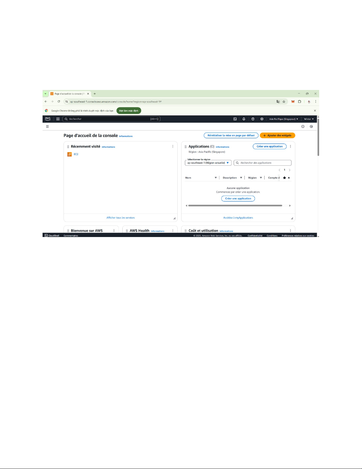 📷 Ảnh 2: Giao diện chính AWS Console với vùng Singapore và EC2 đang được sử dụng.