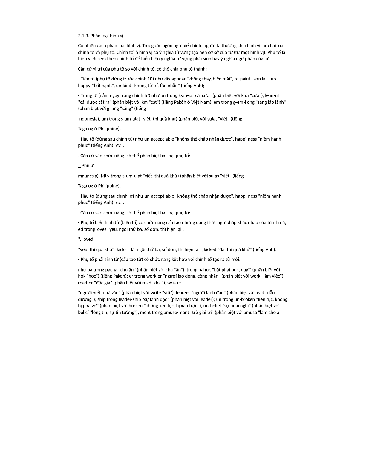 Dẫn luận Ngôn ngữ học: Hình vị và phương pháp phân xuất từ (LHTH101)