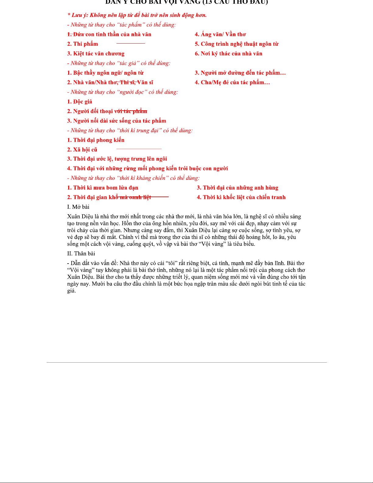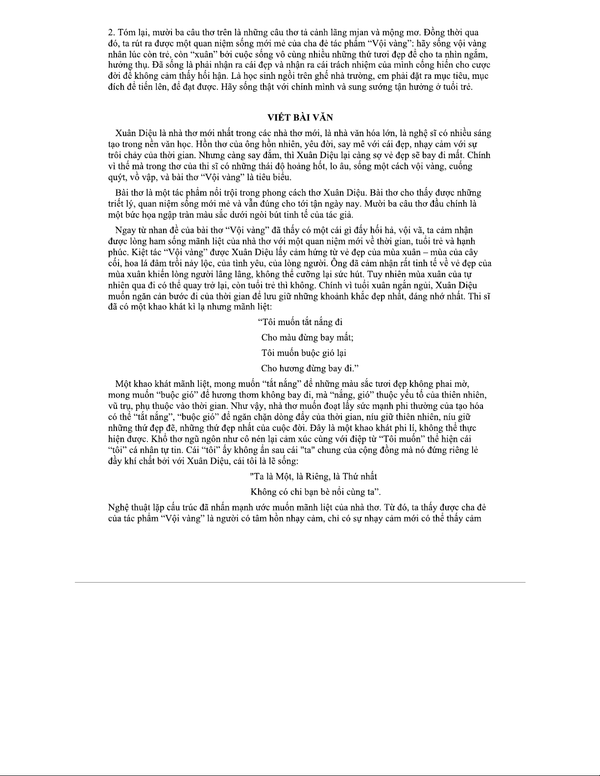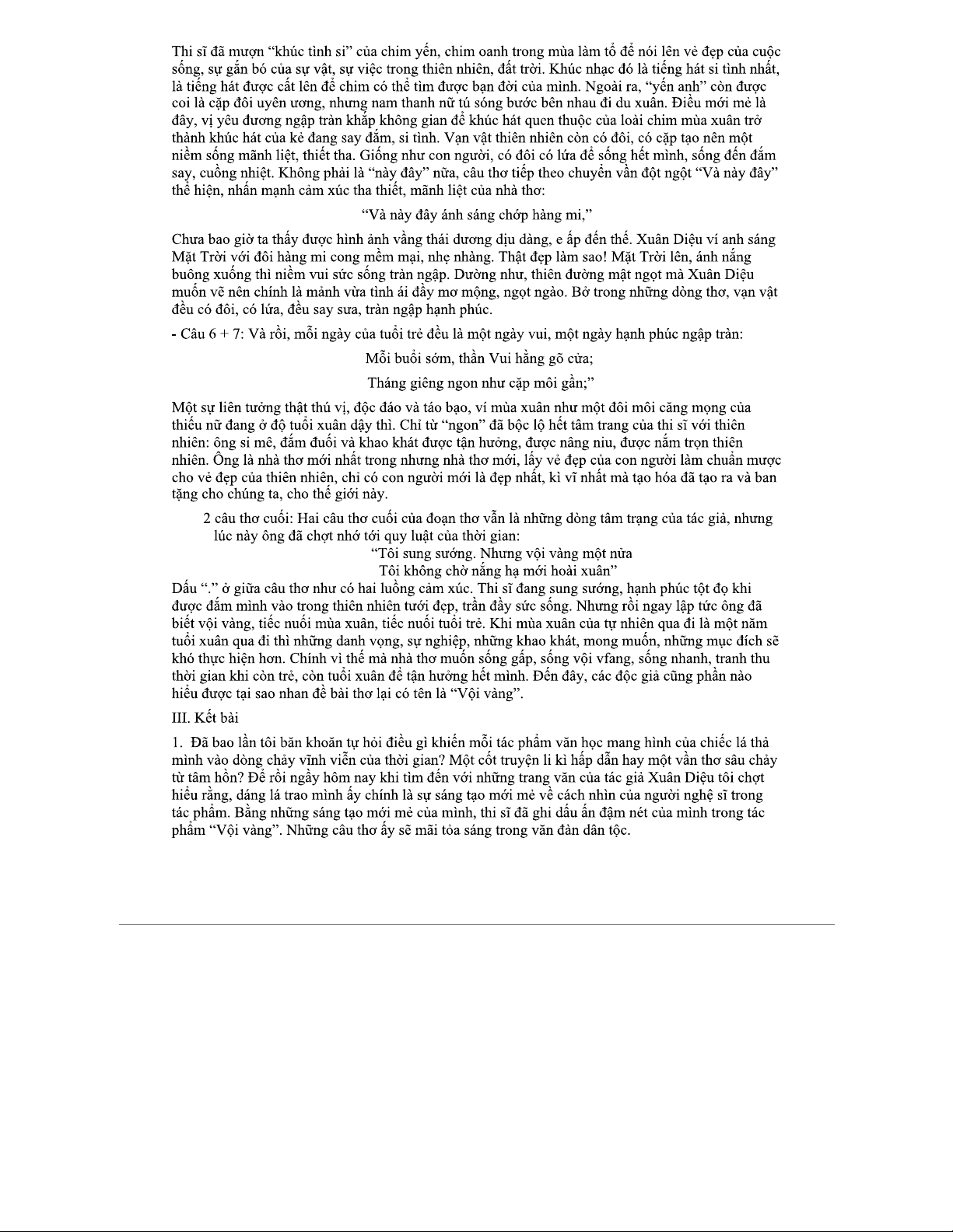 DÀN Ý BÀI VĂN MẪU VỀ TÁC PHẨM "VỘI VÀNG" CỦA XUÂN DIỆU