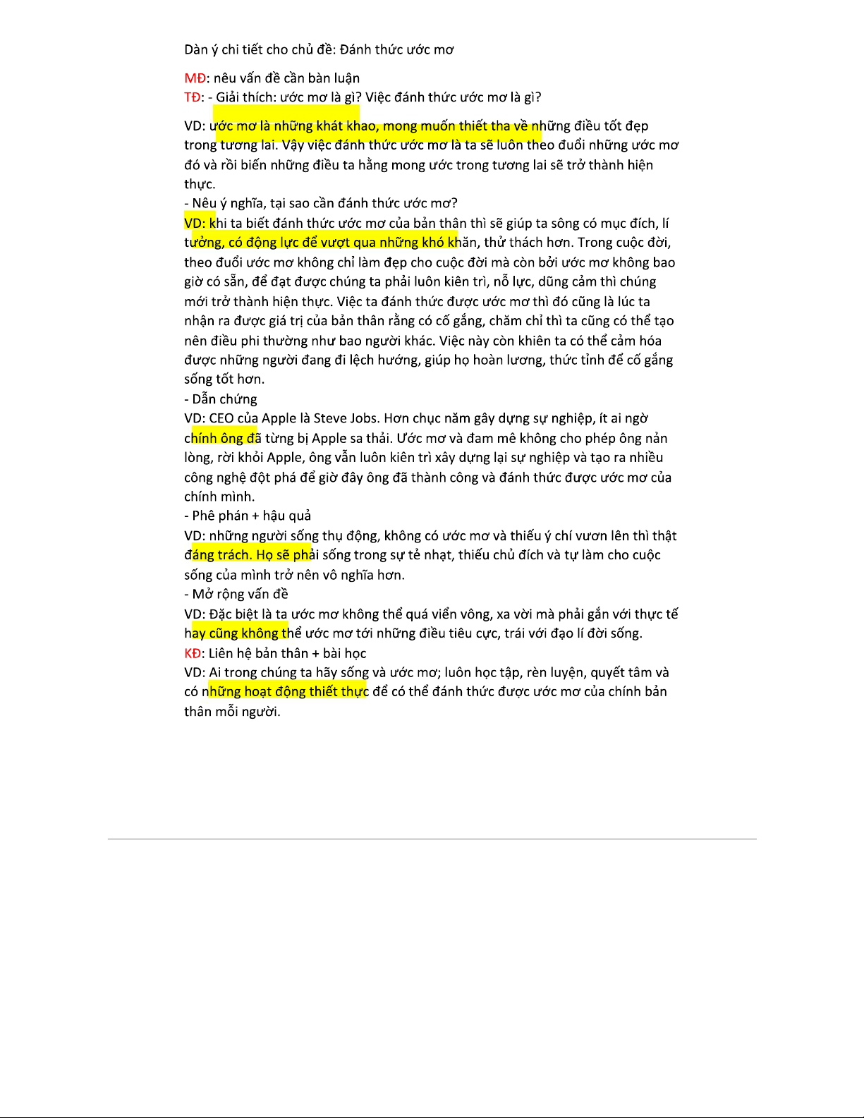 Dàn ý chi tiết nghị luận xã hội về Đánh thức ước mơ