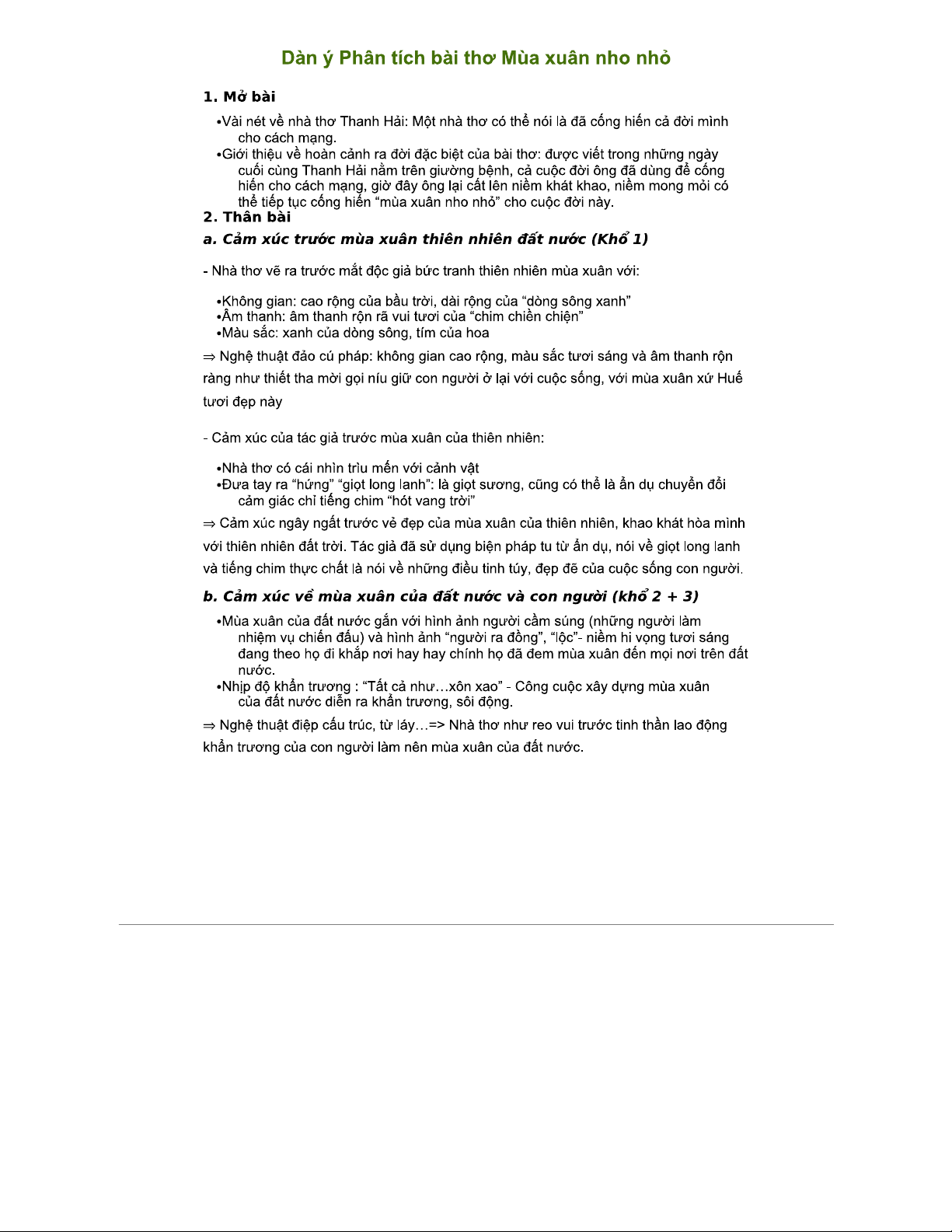Dàn ý Phân tích bài thơ "Mùa xuân nho nhỏ" - Văn 9