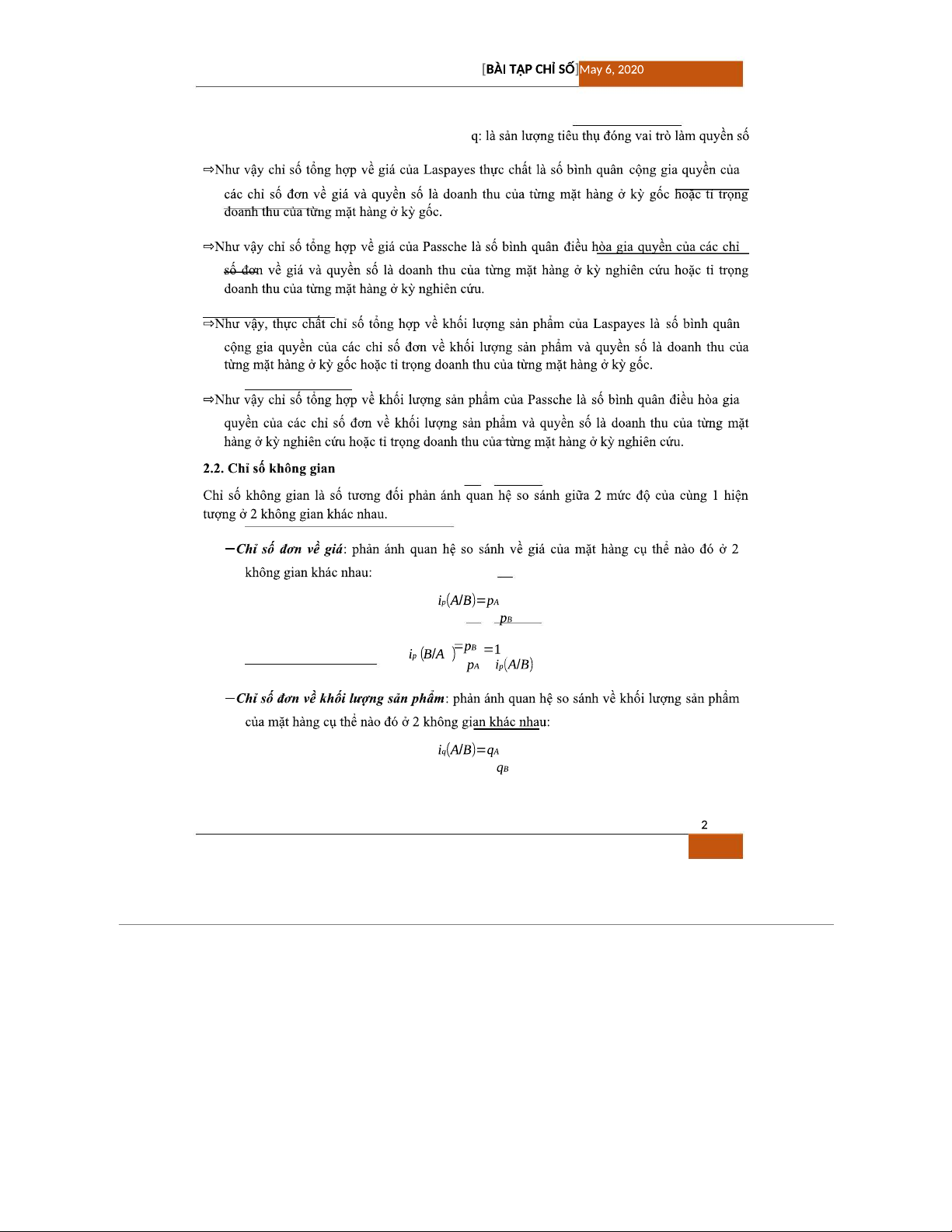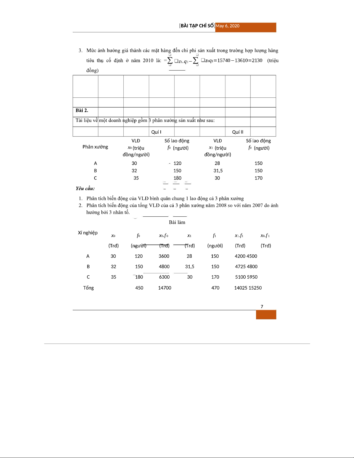 DẠNG 2 BÀI TẬP CHỈ SỐ - Bài tập Nguyên lý thống kê