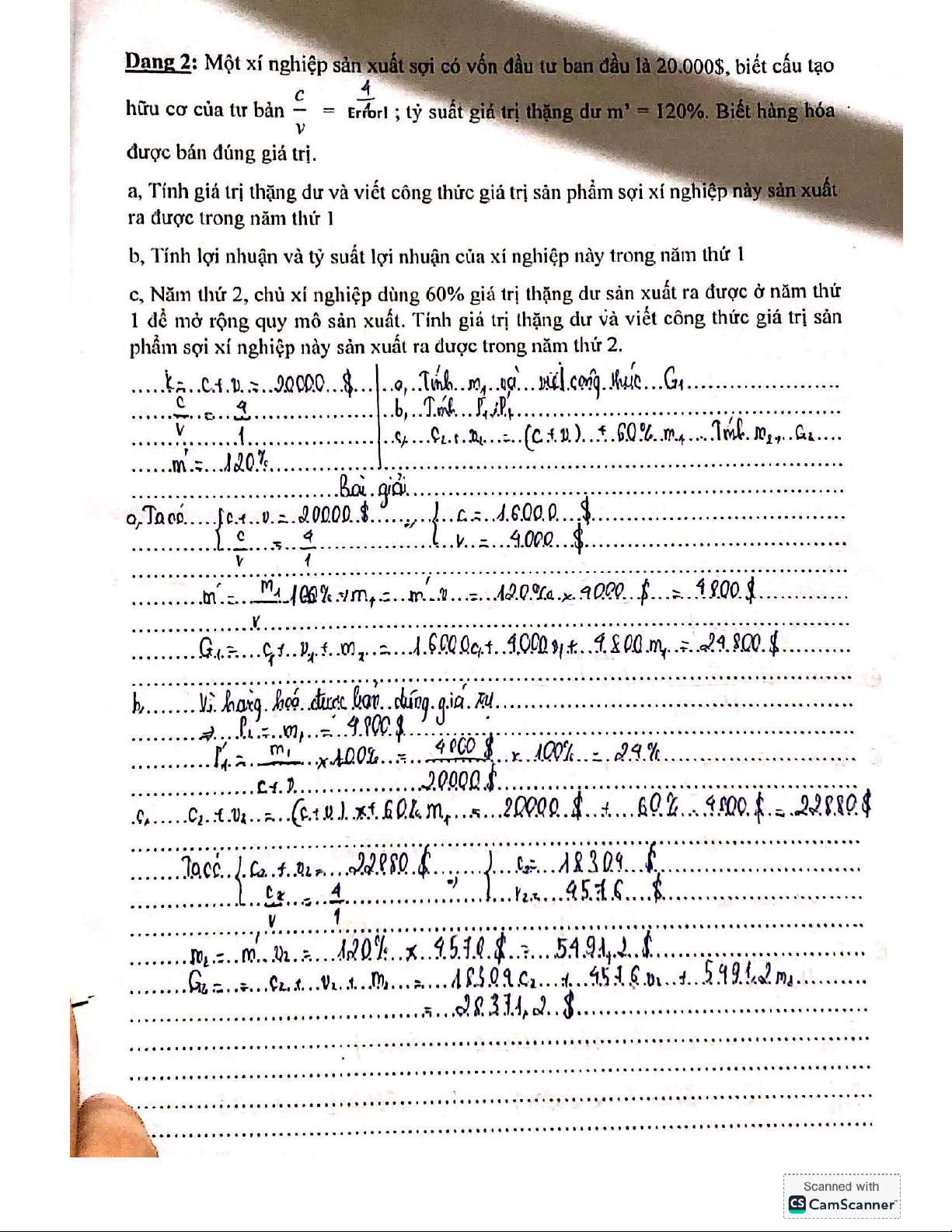 Dang 2: Tính Toán Giá Trị và Lợi Nhuận Xí Nghiệp Sản Xuất Sợi | Kinh tế chính trị | Trường Đại học Khoa học Tự nhiên, Đại học Quốc gia Hà Nội