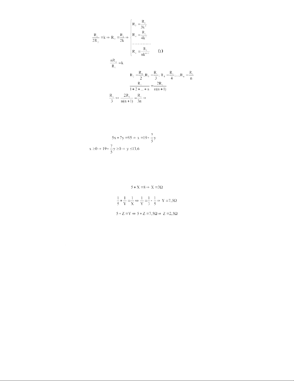 Gọi x; y và z lần lượt là số điện trở loại 1; 3 và 8 (với x; y và z là các số nguyên không âm) a) Theo đề ra ta có: + Lấy (1) – (2) ta có: + Vì (*)
