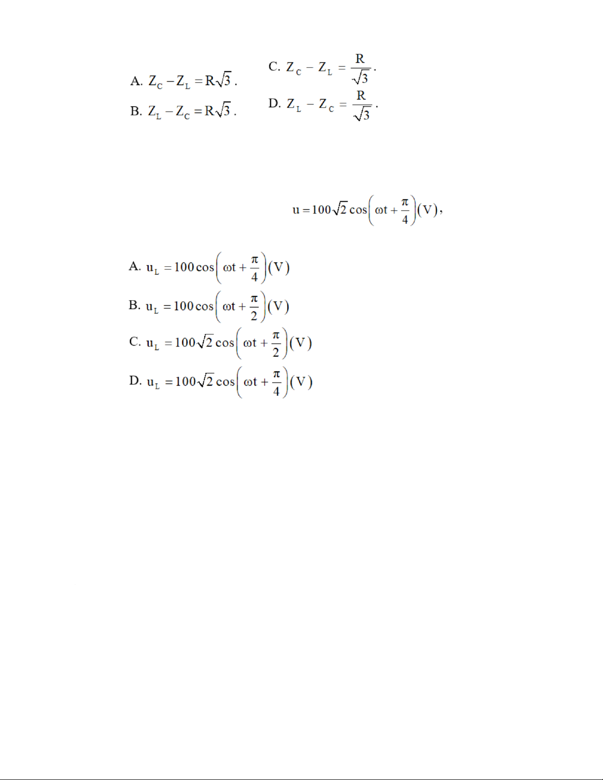 Câu 4: Cho mạch điện xoay chiều RLC nối tiếp, L = 0,637H, C = 39,8μF, đặt vào hai đầu mạch điện áp