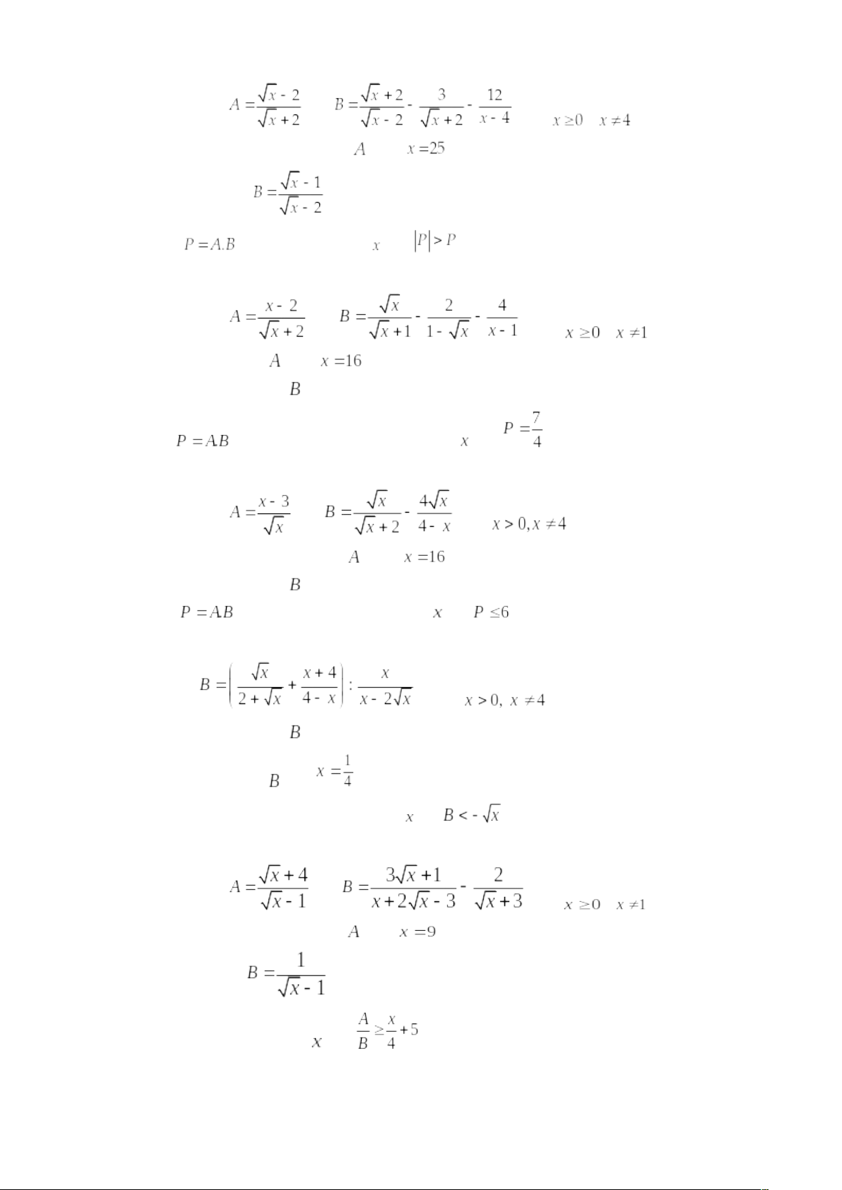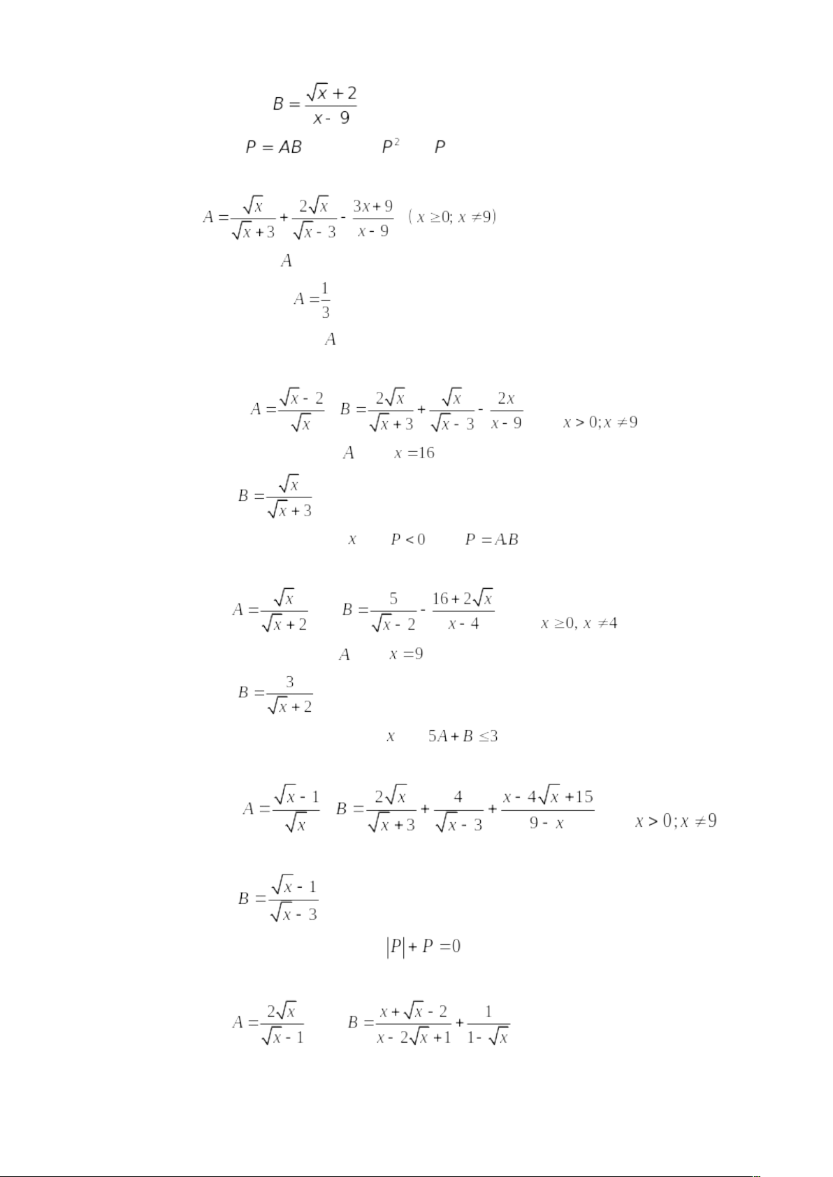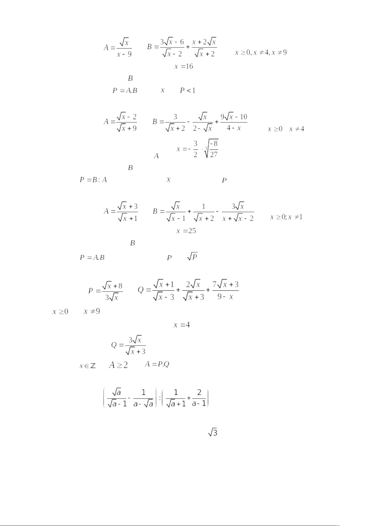 3) Cho P = A: B. Tìm x nguyên để .