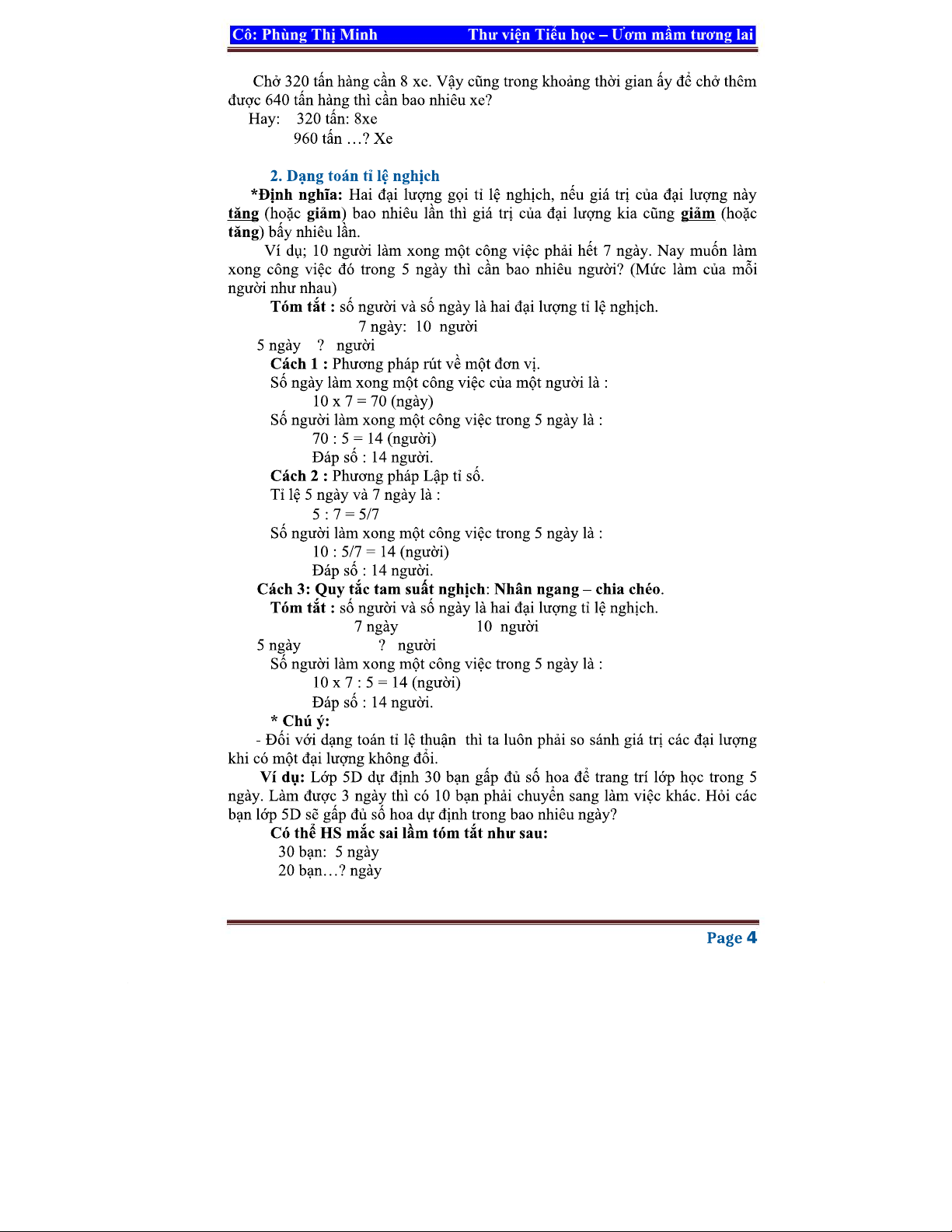 DẠNG TOÁN TỈ LỆ THUẬN VÀ TỈ LỆ NGHỊCH - GIẢI THÍCH VÀ BÀI TẬP