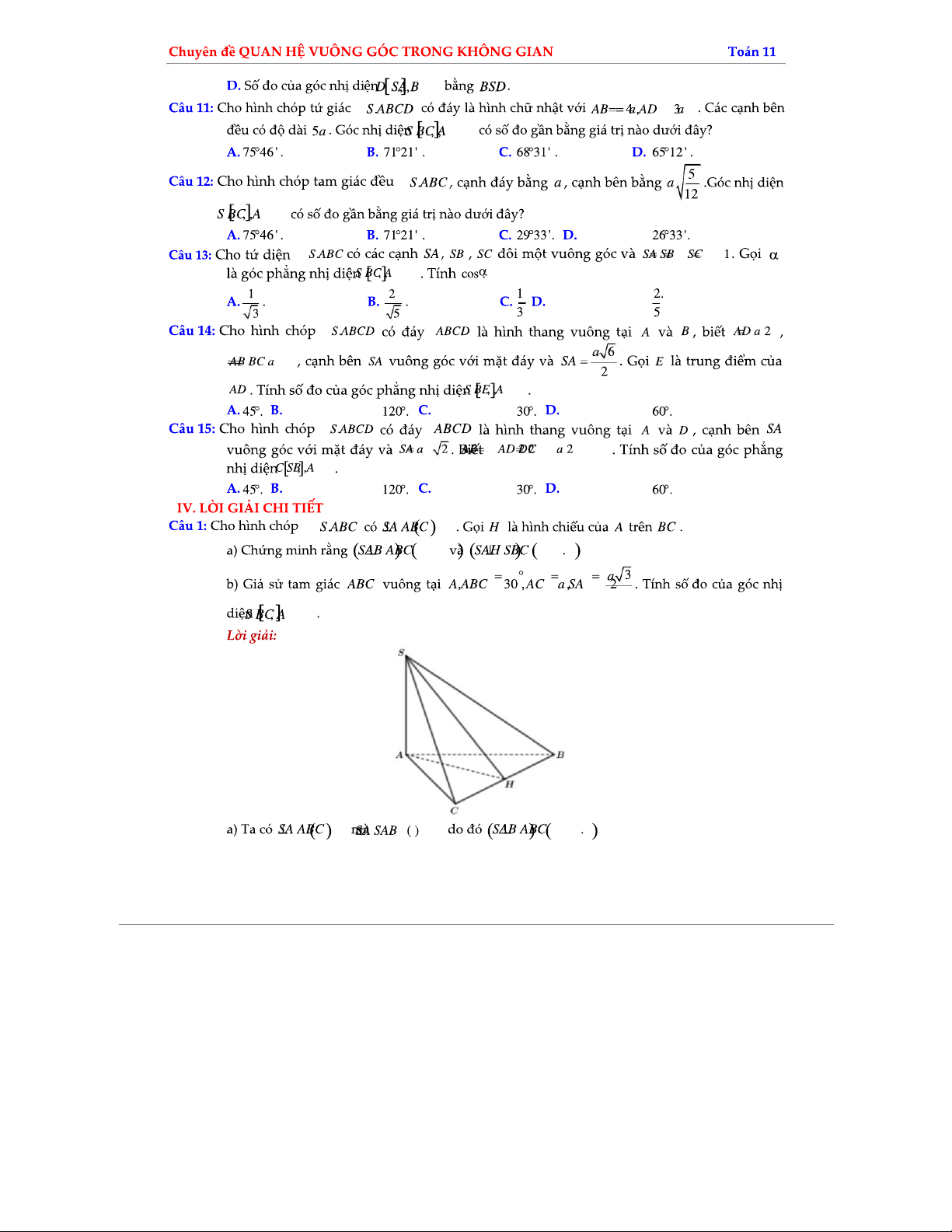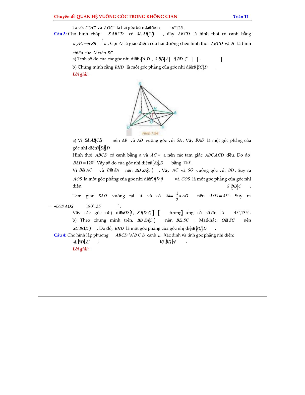 Dạng Toán Xác Định Góc Nhị Diện - Toán 11