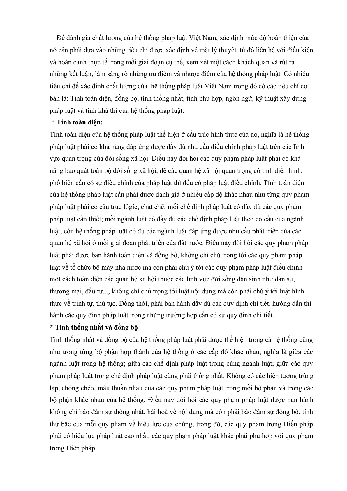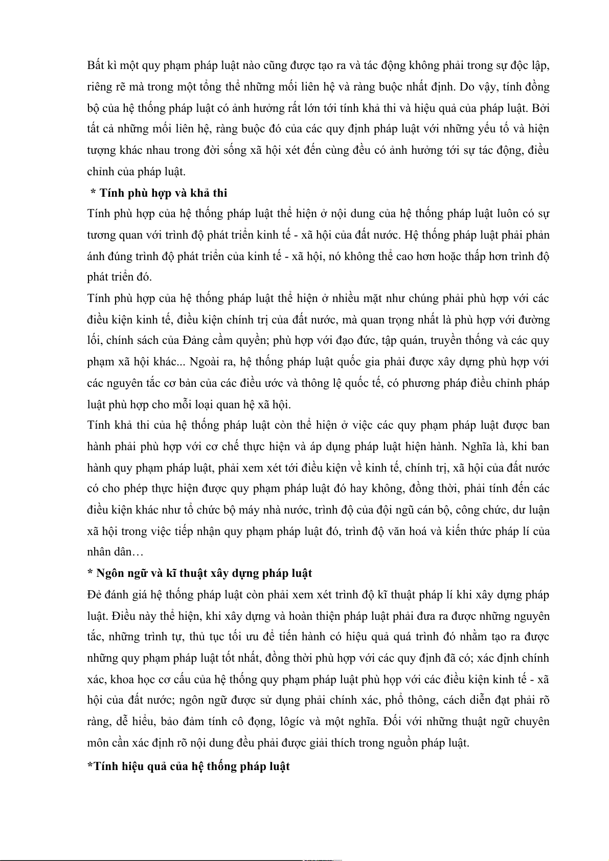 pháp luật và tính khả thi của hệ thống pháp luật. * Tính toàn diện: