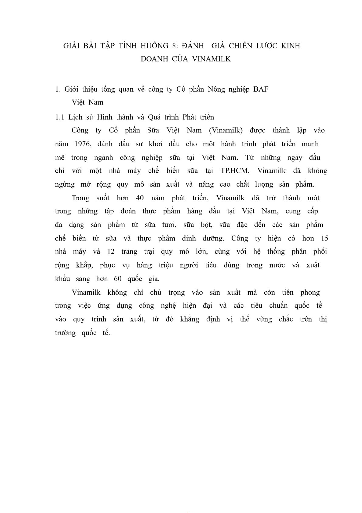 Đánh Giá Chiến Lược Vinamilk | Bài thảo luận quản trị chiến lược