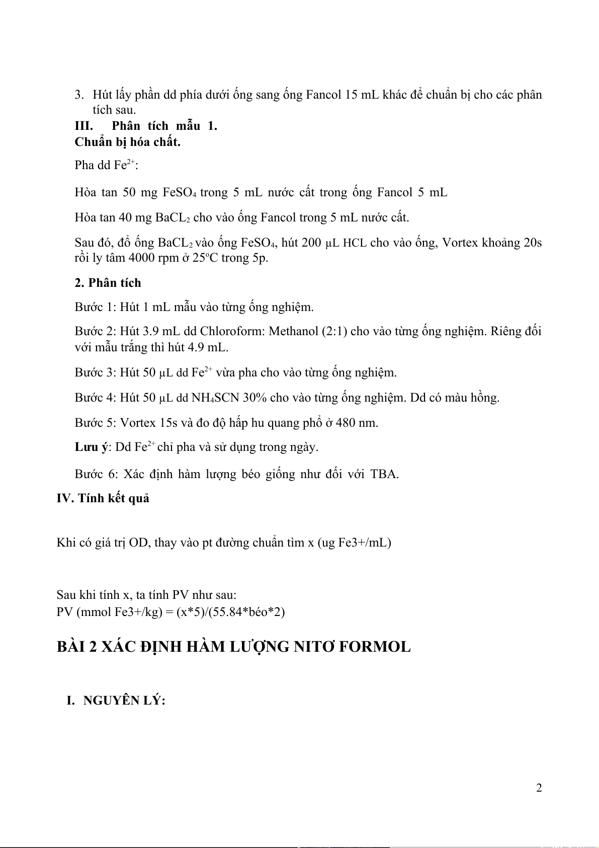 BÀI 2 XÁC ĐỊNH HÀM LƯỢNG NITƠ FORMOL I. NGUYÊN LÝ: 2