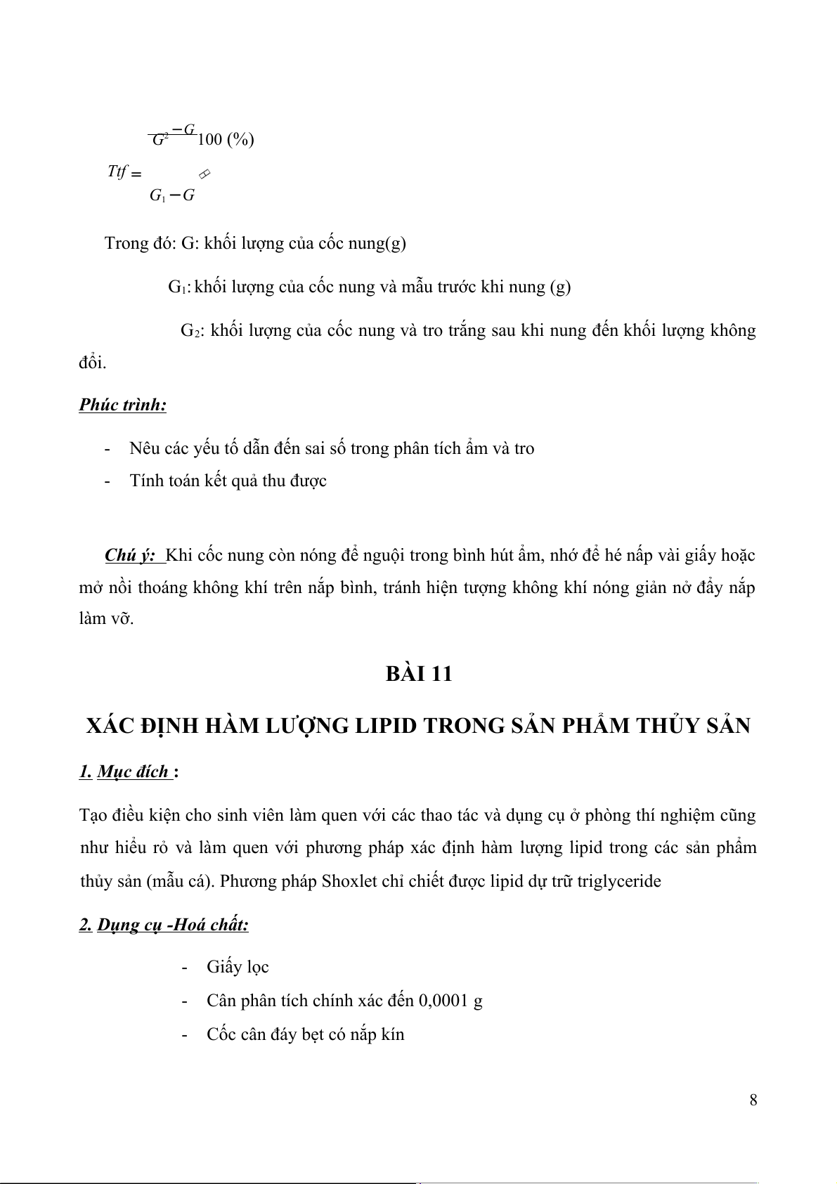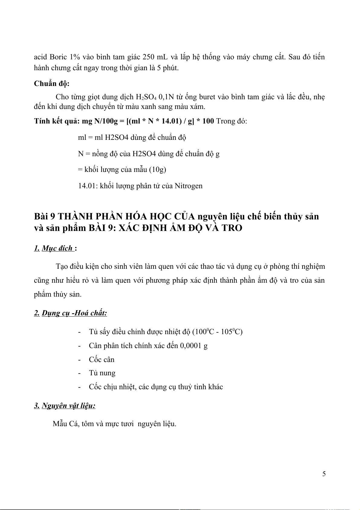 cũng như hiểu rỏ và làm quen với phương pháp xác định thành phần ẩm độ và tro của sản phẩm thủy sản. 2.