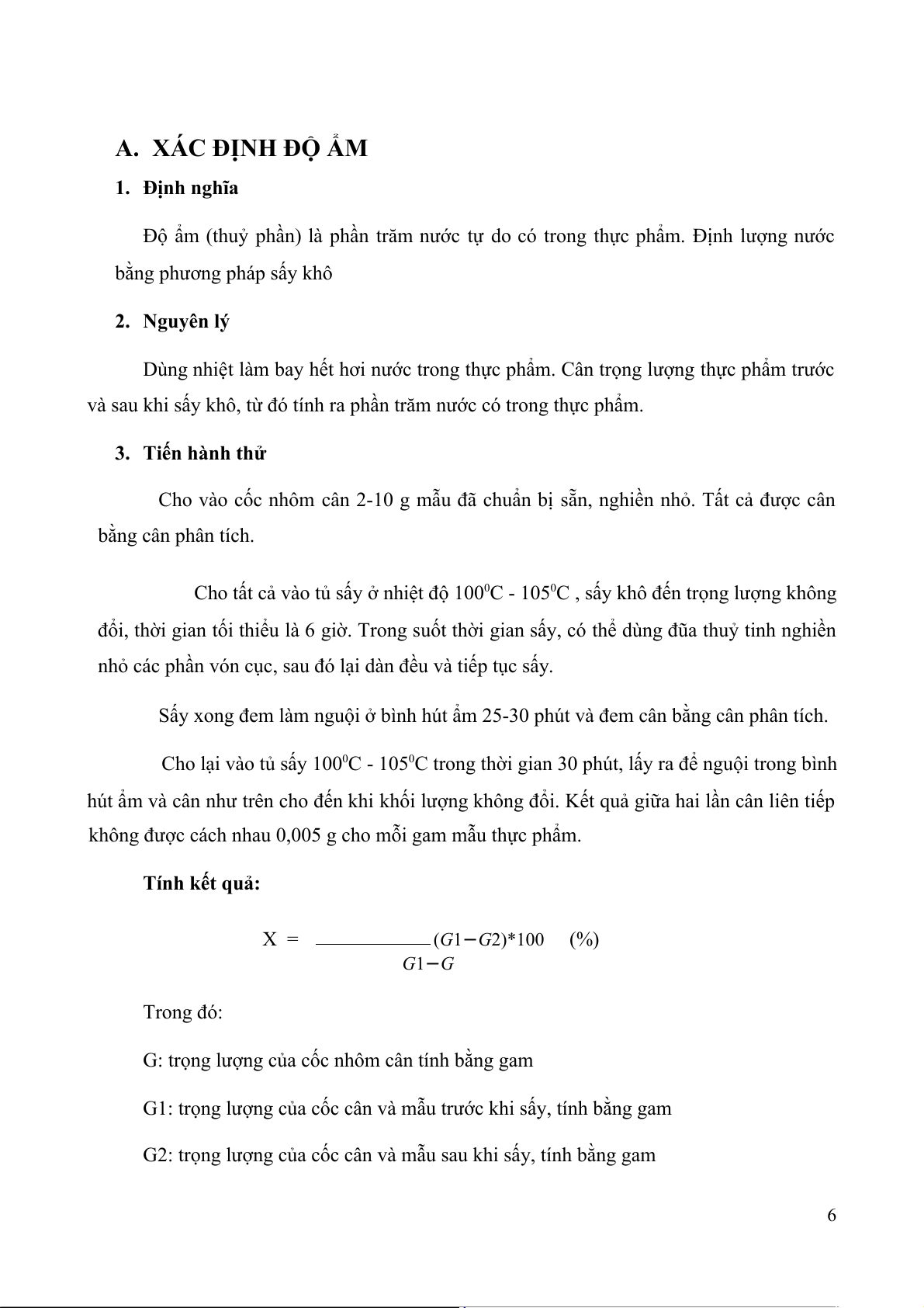 và sau khi sấy khô, từ đó tính ra phần trăm nước có trong thực phẩm. 3. Tiến hành thử