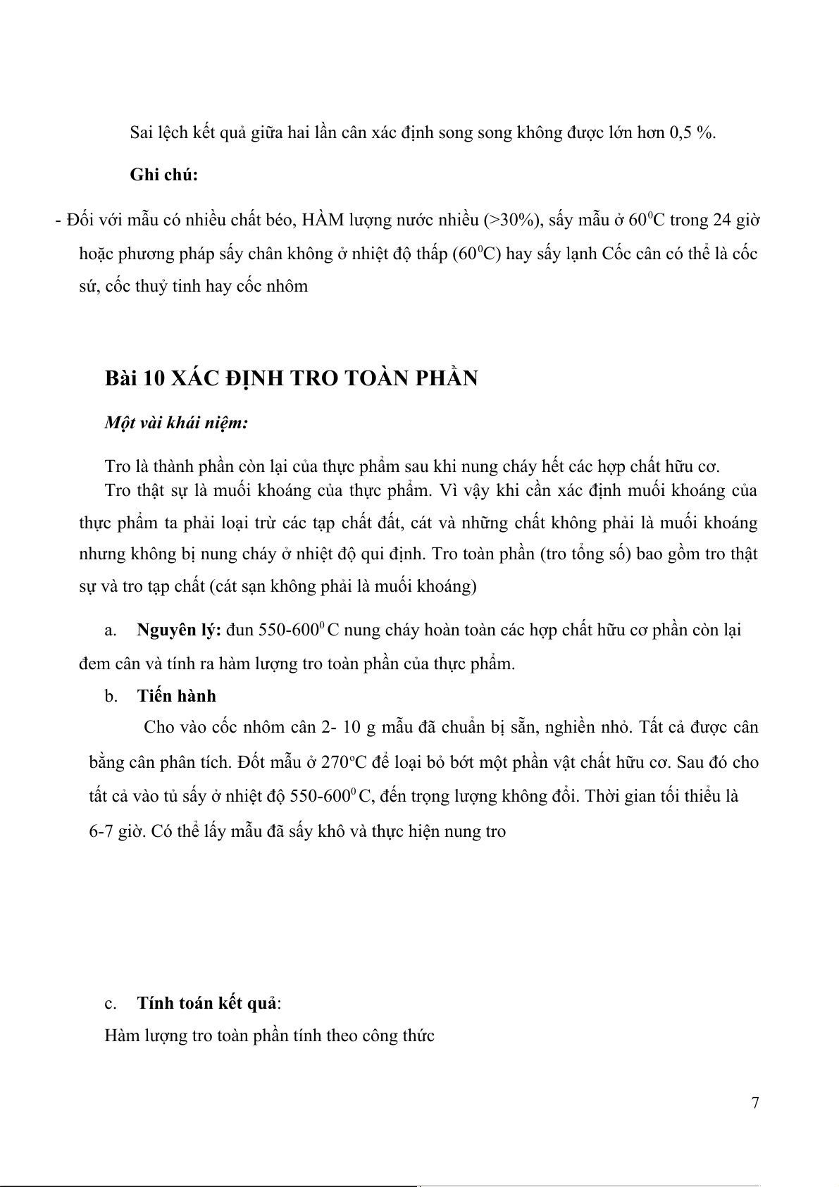 và sản phẩm BÀI 9: XÁC ĐỊNH ẨM ĐỘ VÀ TRO 1. Mục đích :