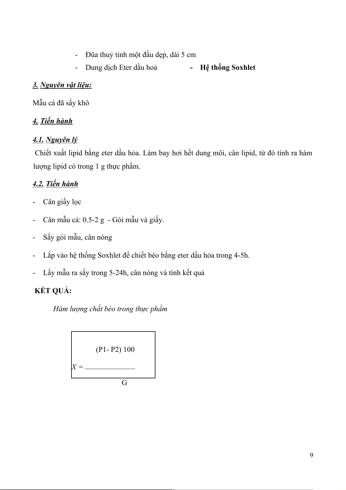 lượng lipid có trong 1 g thực phẩm. 4.2. Tiến hành - Cân giấy lọc