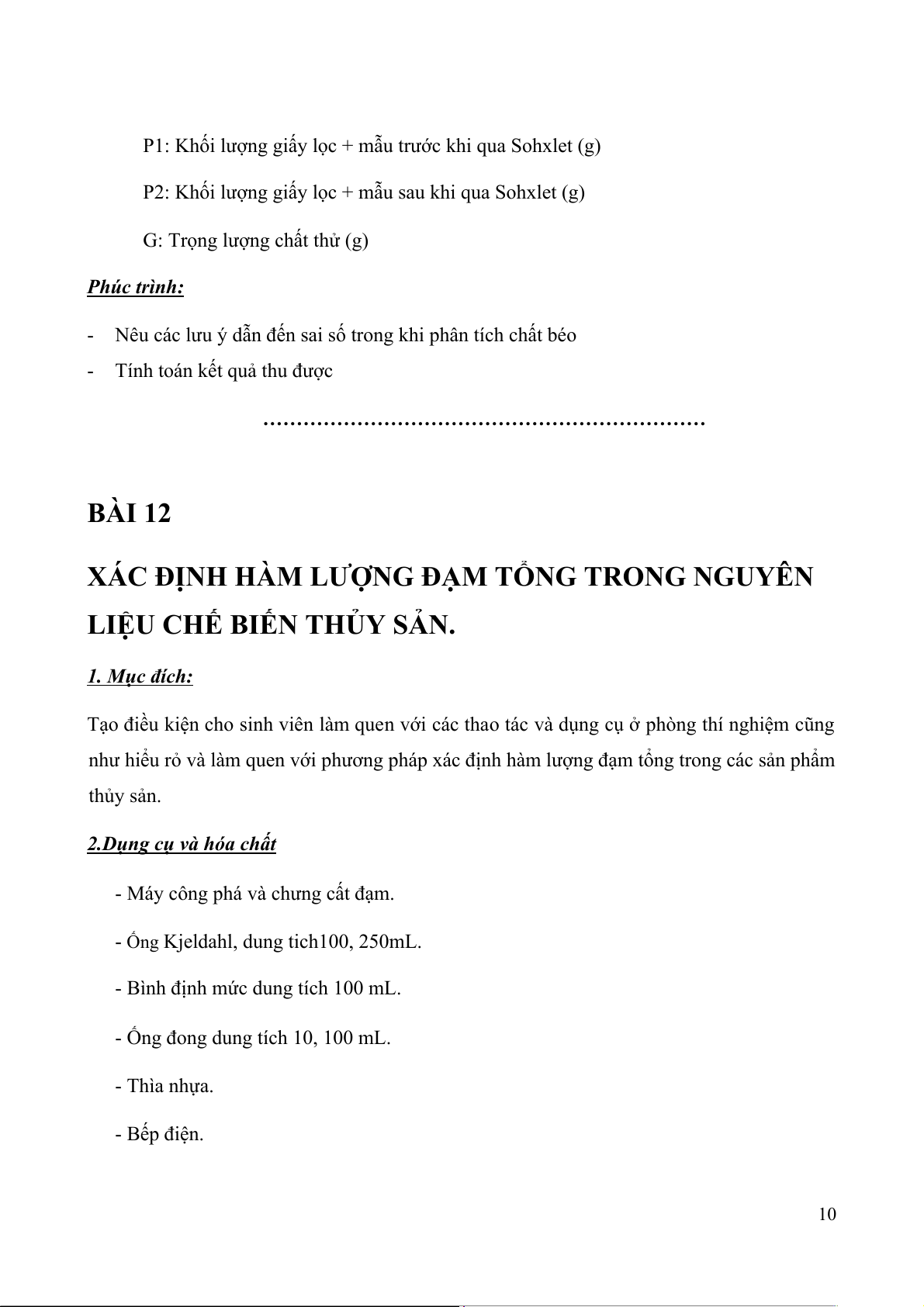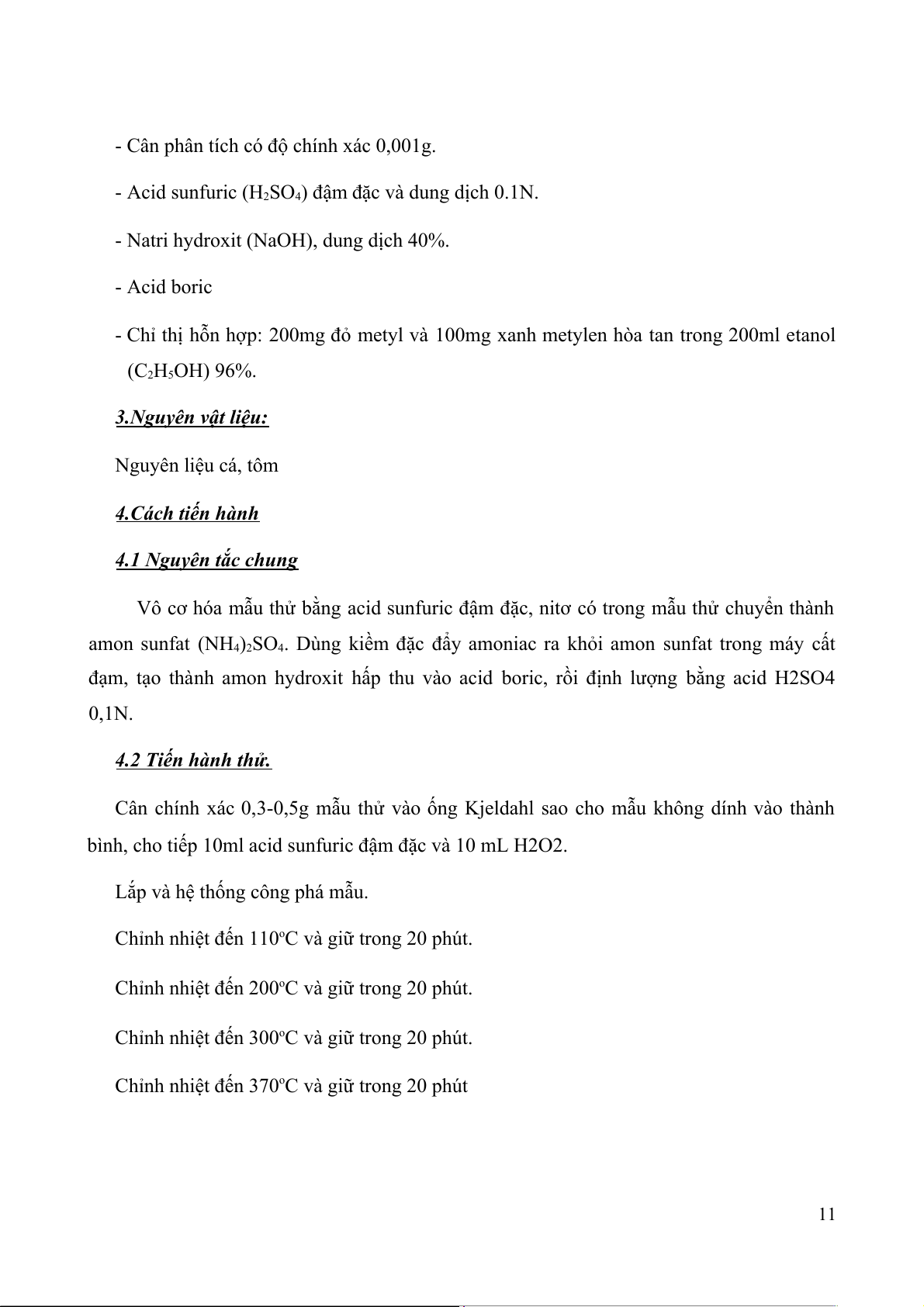 như hiểu rỏ và làm quen với phương pháp xác định hàm lượng đạm tổng trong các sản phẩm thủy sản.