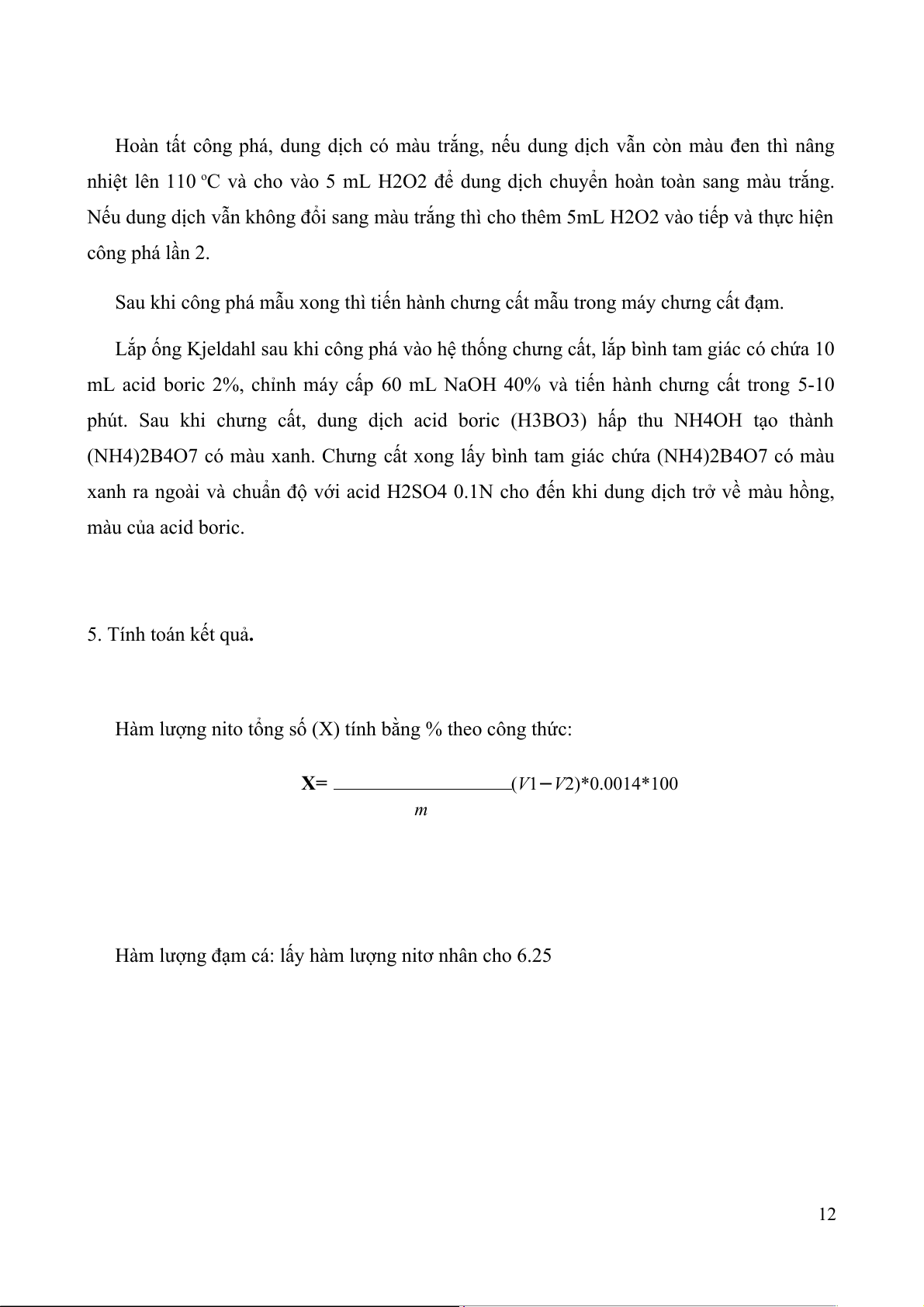 Hàm lượng đạm cá: lấy hàm lượng nitơ nhân cho 6.25 12