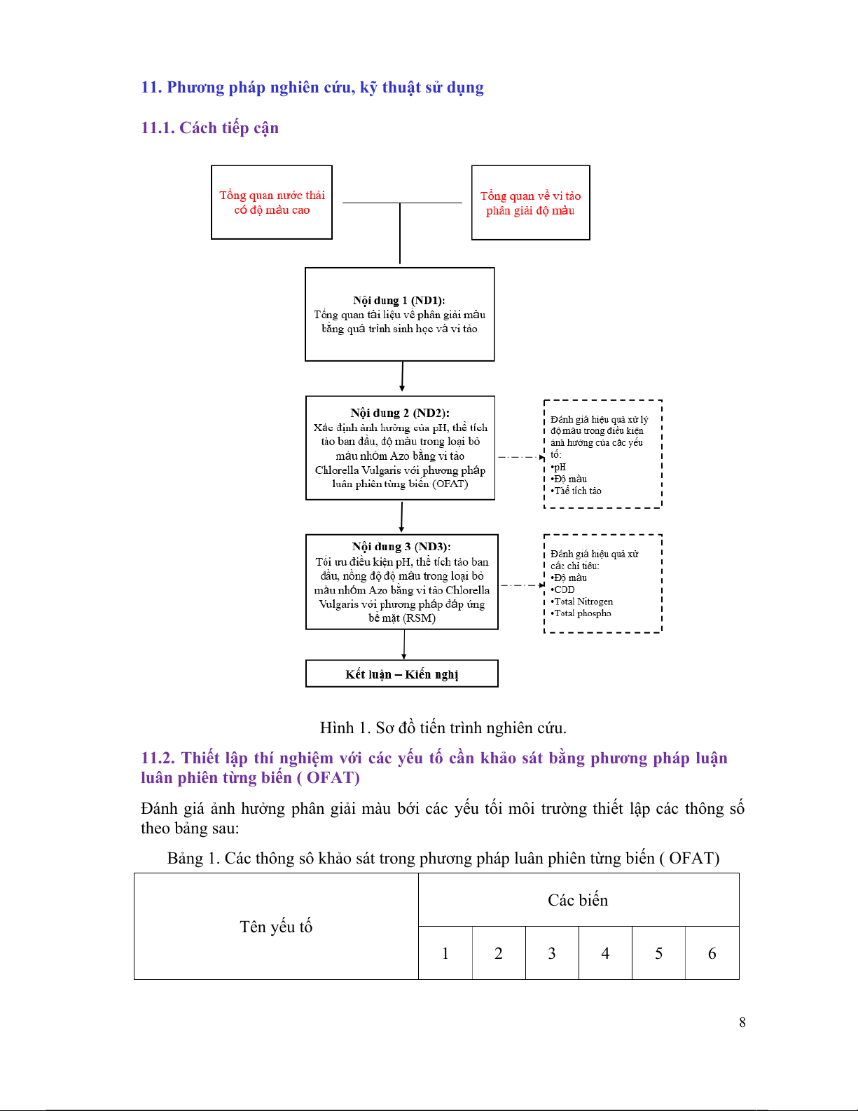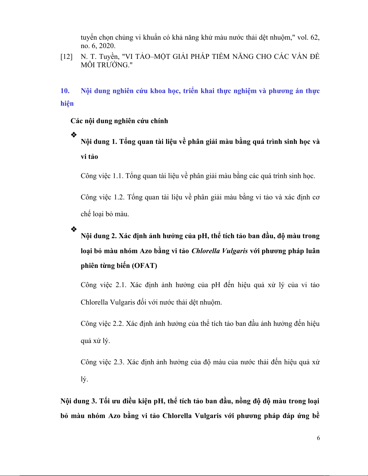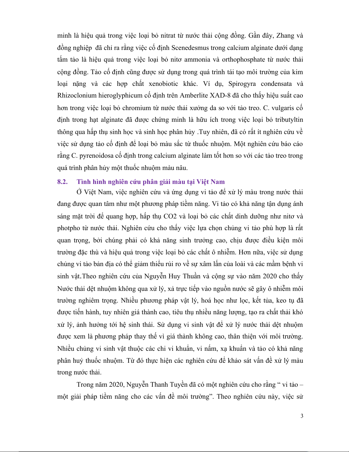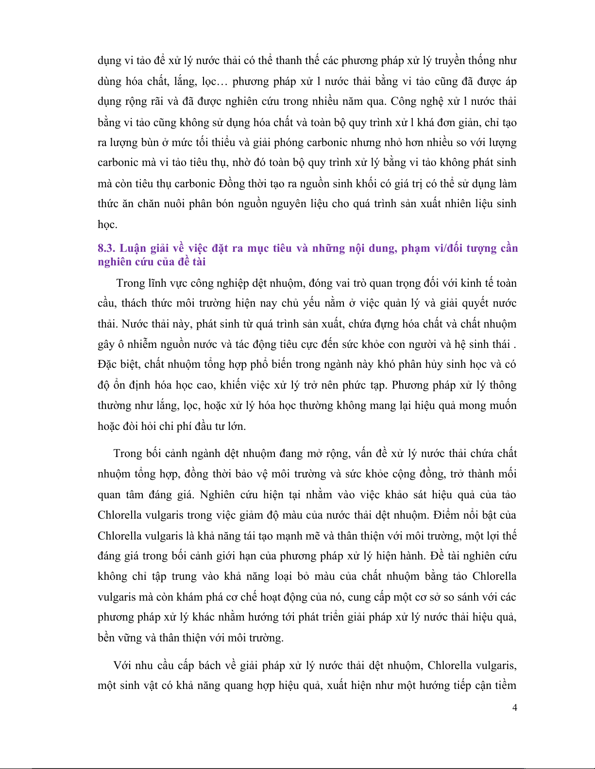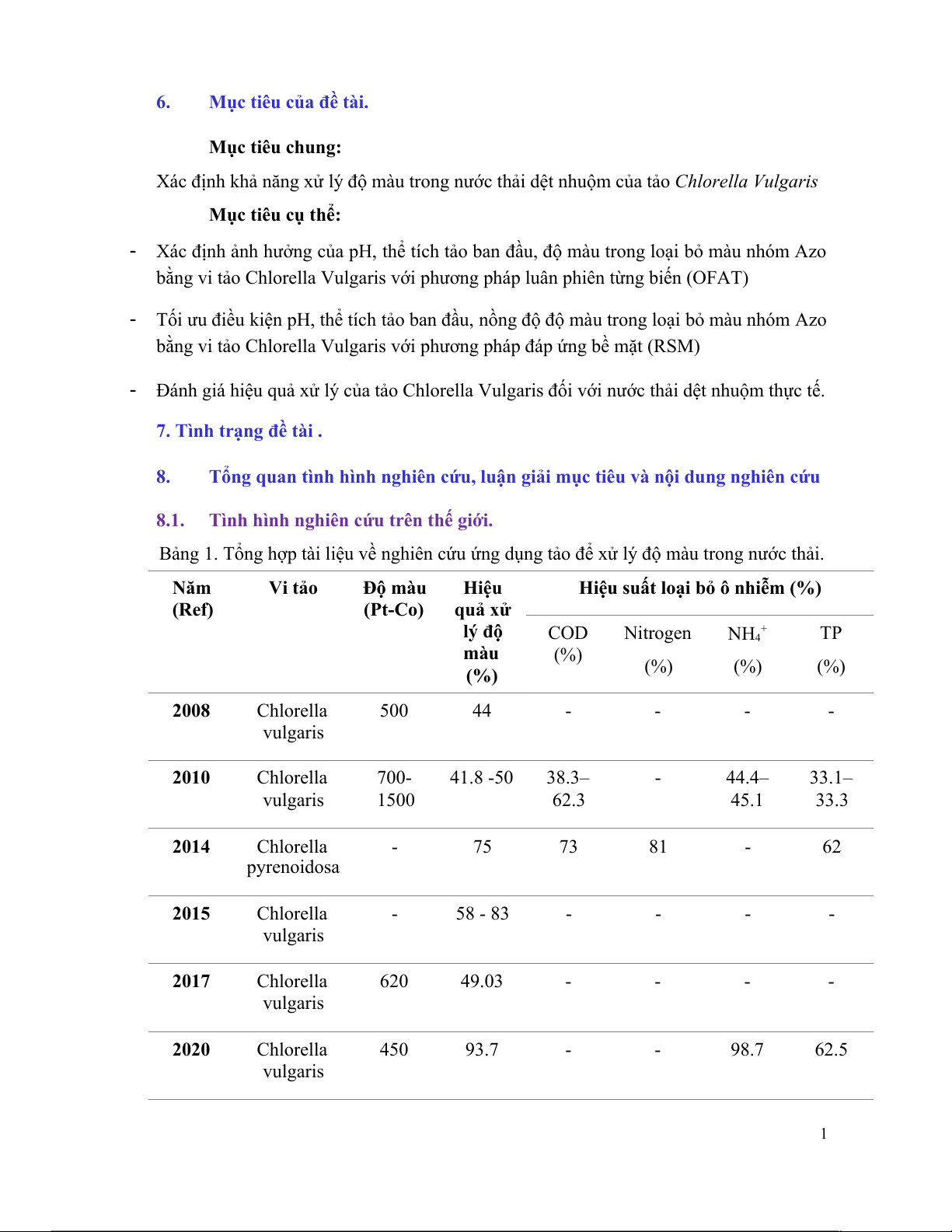 lý nước thải dệt nhuộm”. Bằng cách tập trung vào việc sử dụng Chlorella vulgaris, một