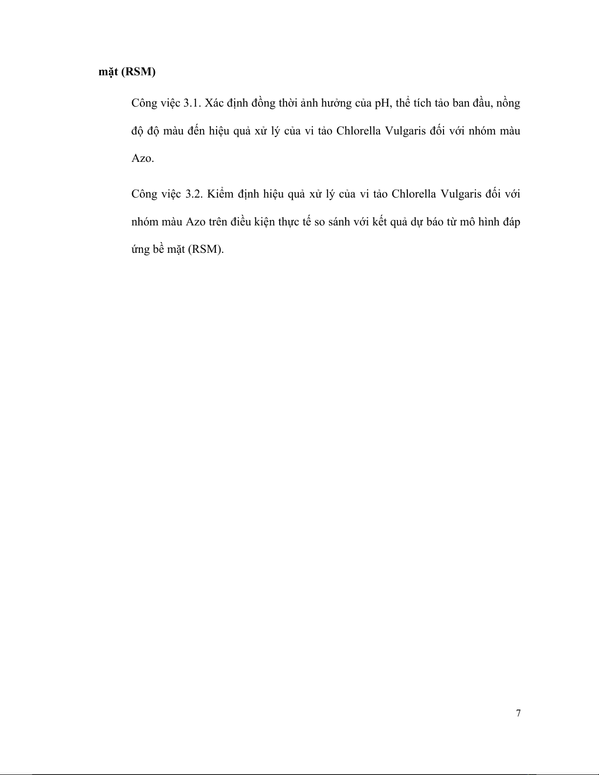 bỏ màu nhóm Azo bằng vi tảo Chlorella Vulgaris với phương pháp đáp ứng bề 6 mặt (RSM)