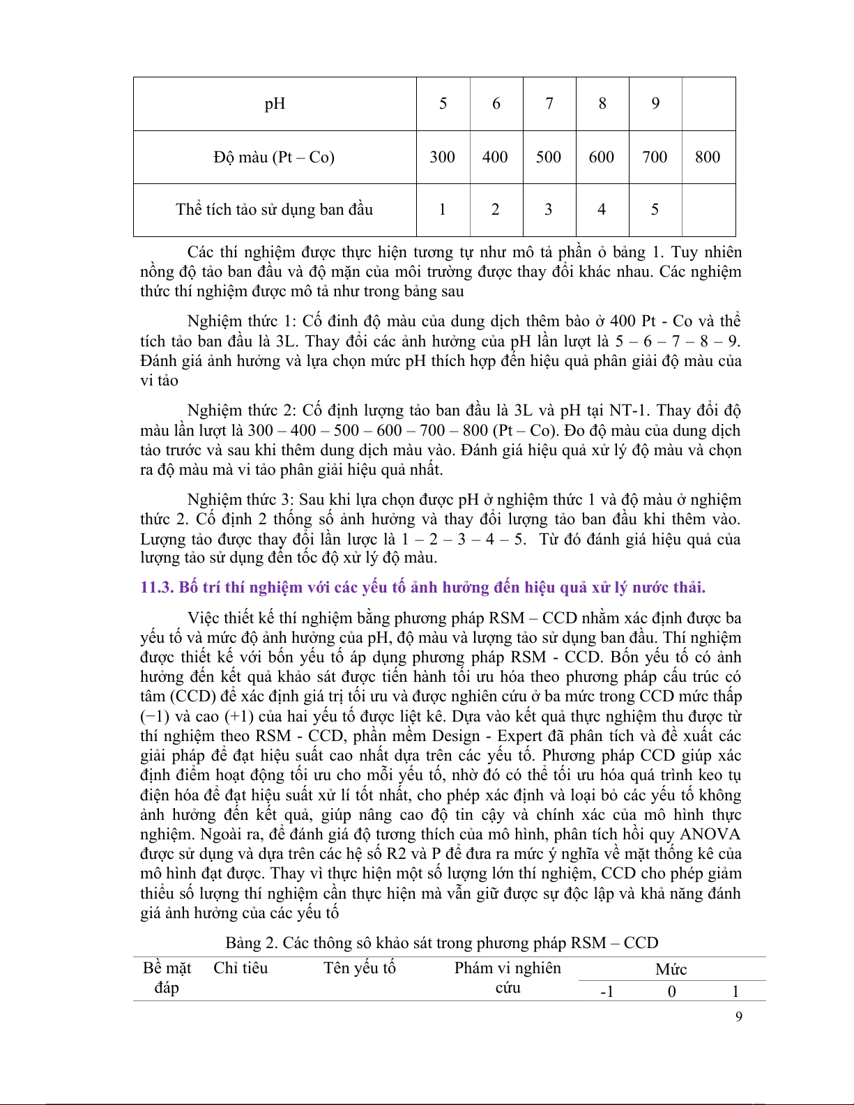 11.3. Bố trí thí nghiệm với các yếu tố ảnh hưởng đến hiệu quả xử lý nước thải.