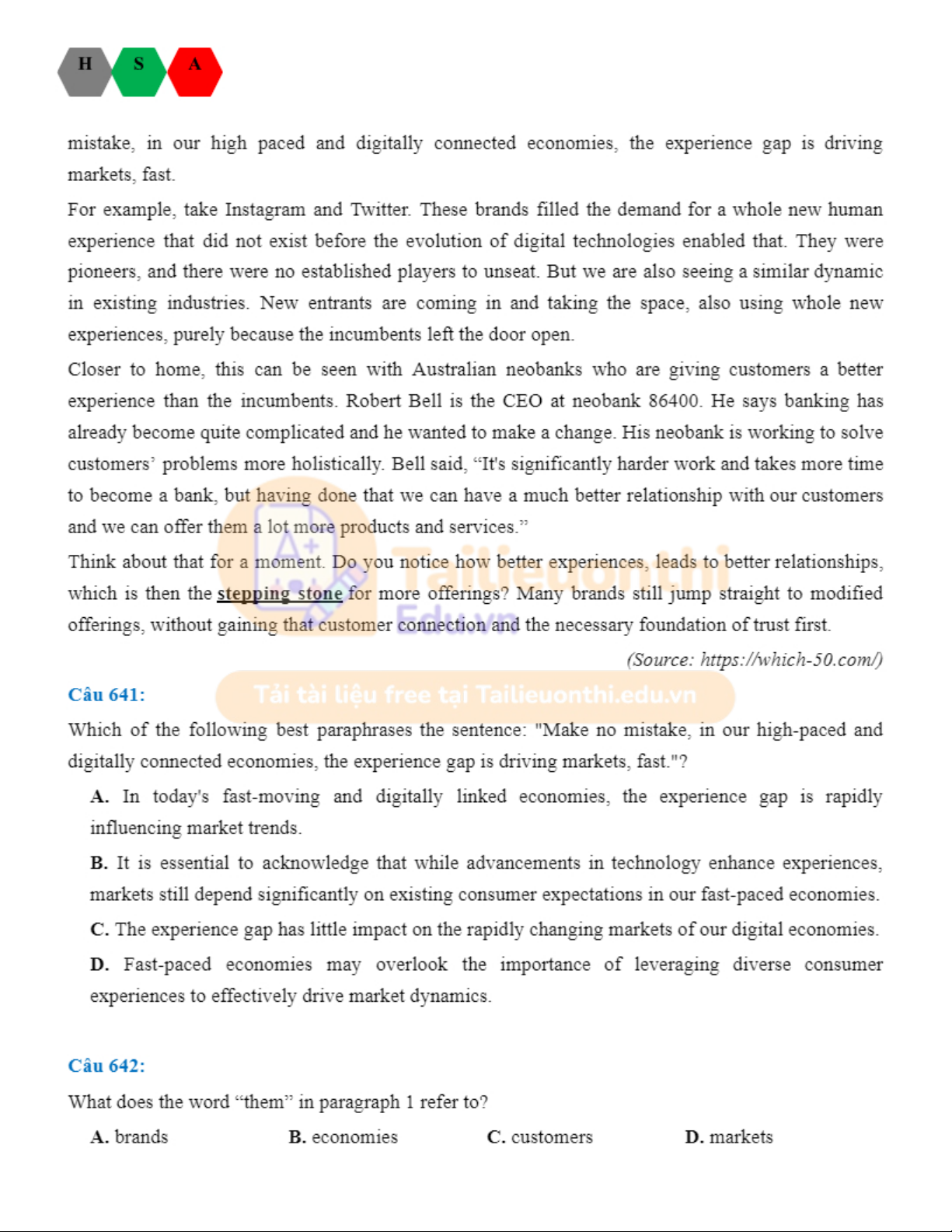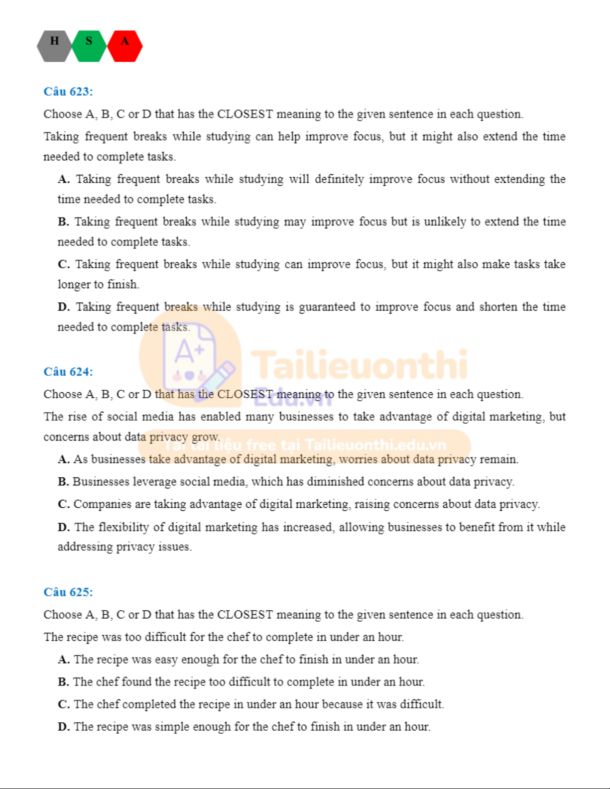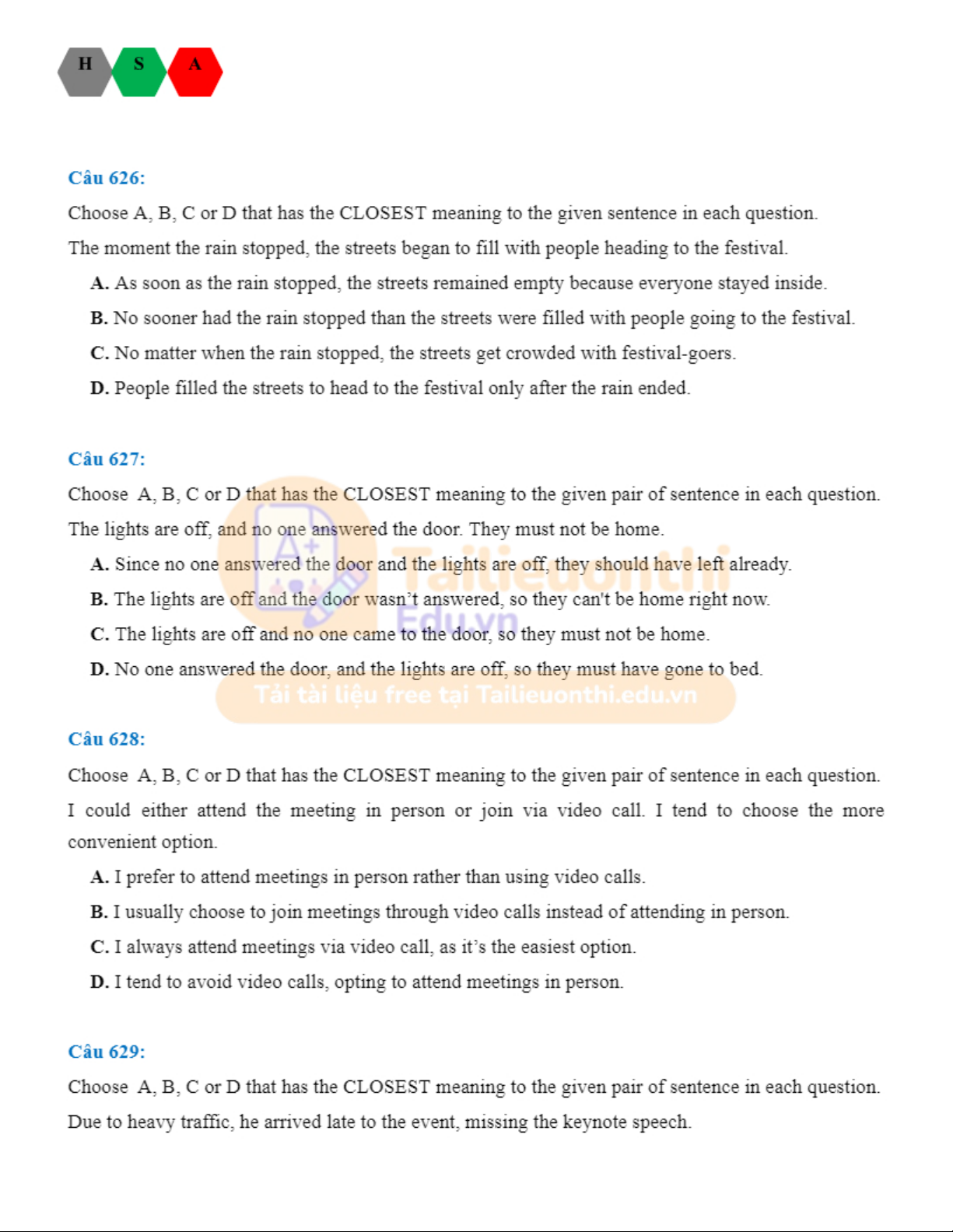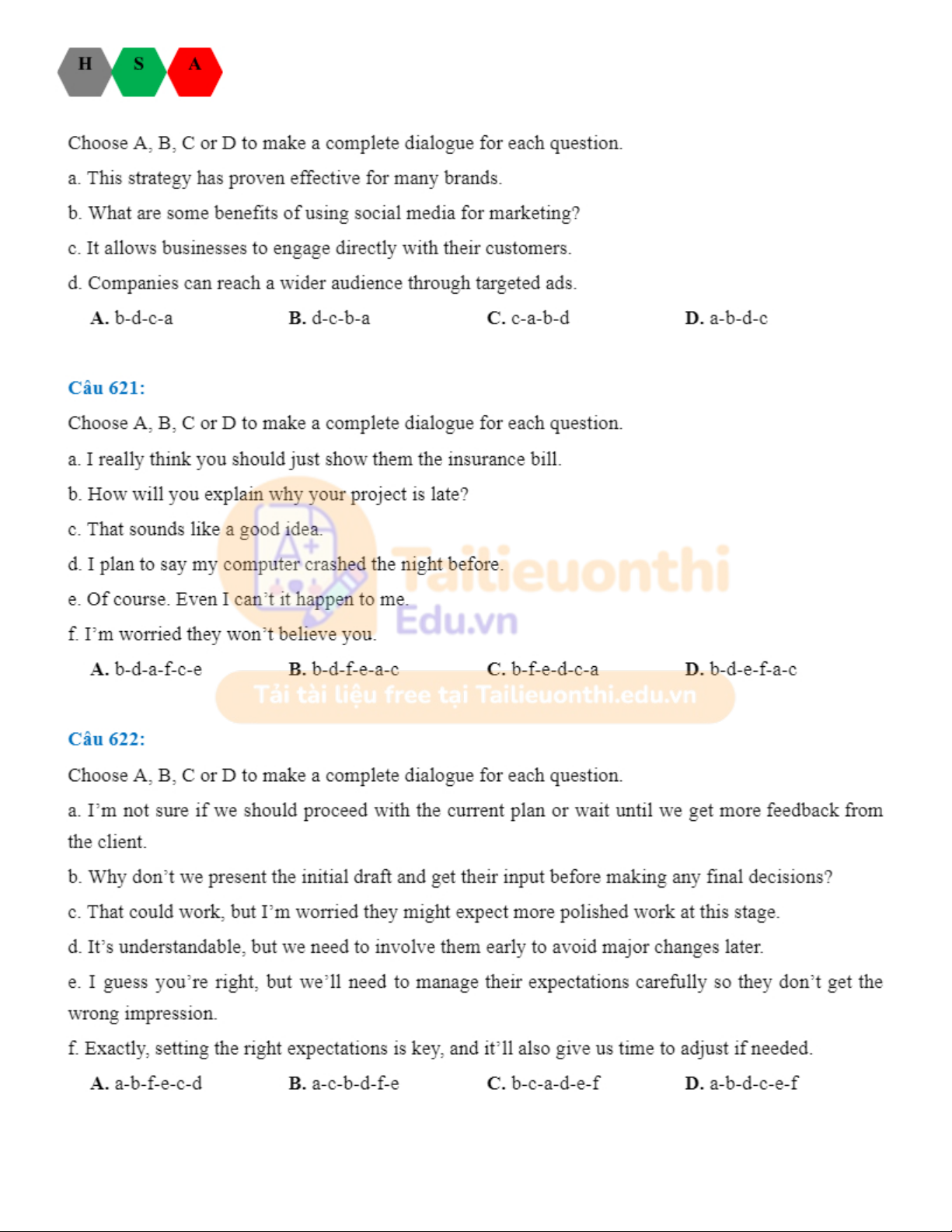 Đánh giá năng lực tiếng anh HSA. Tài liệu giúp bạn tham khảo, ôn tập và đạt kết quả cao. Mời đọc đón xem!