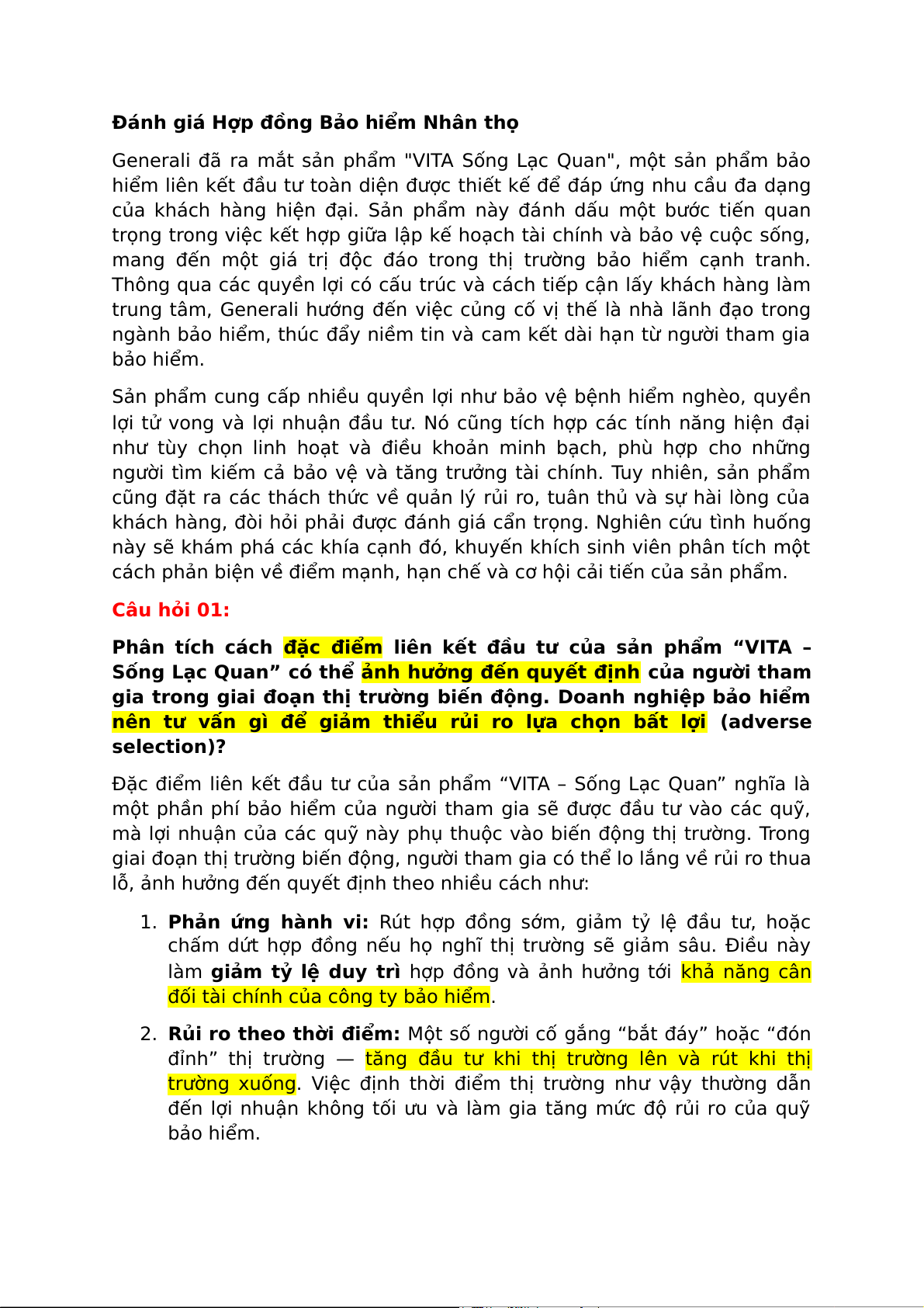 Phân tích cách đặc điểm liên kết đầu tư của sản phẩm “VITA –