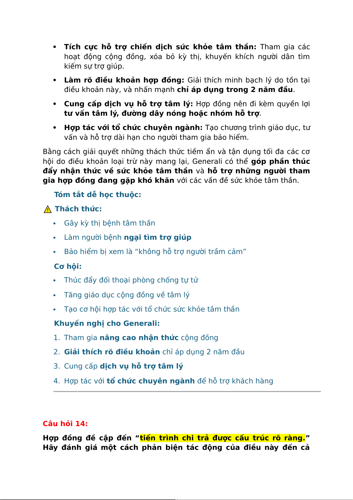 4. Hợp tác với tổ chức chuyên ngành để hỗ trợ khách hàng Câu hỏi 14: