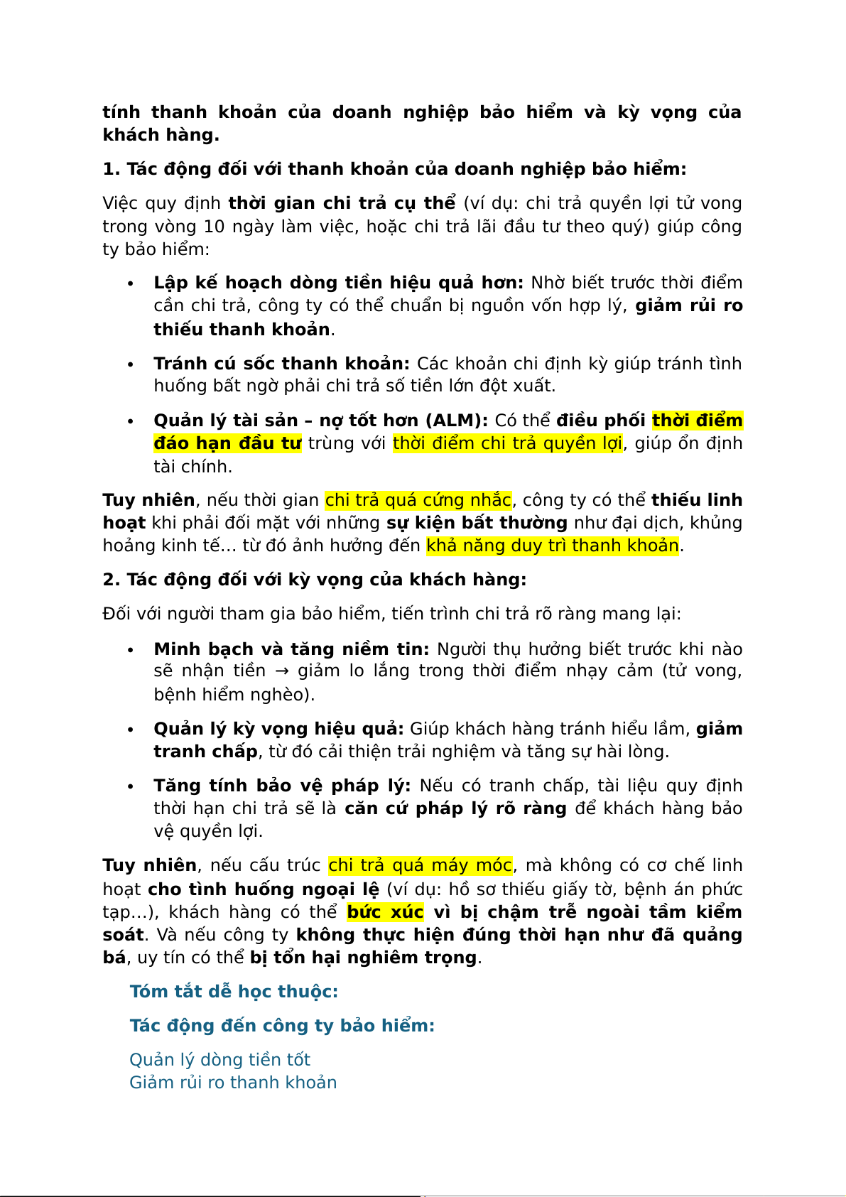 Việc quy định thời gian chi trả cụ thể (ví dụ: chi trả quyền lợi tử vong