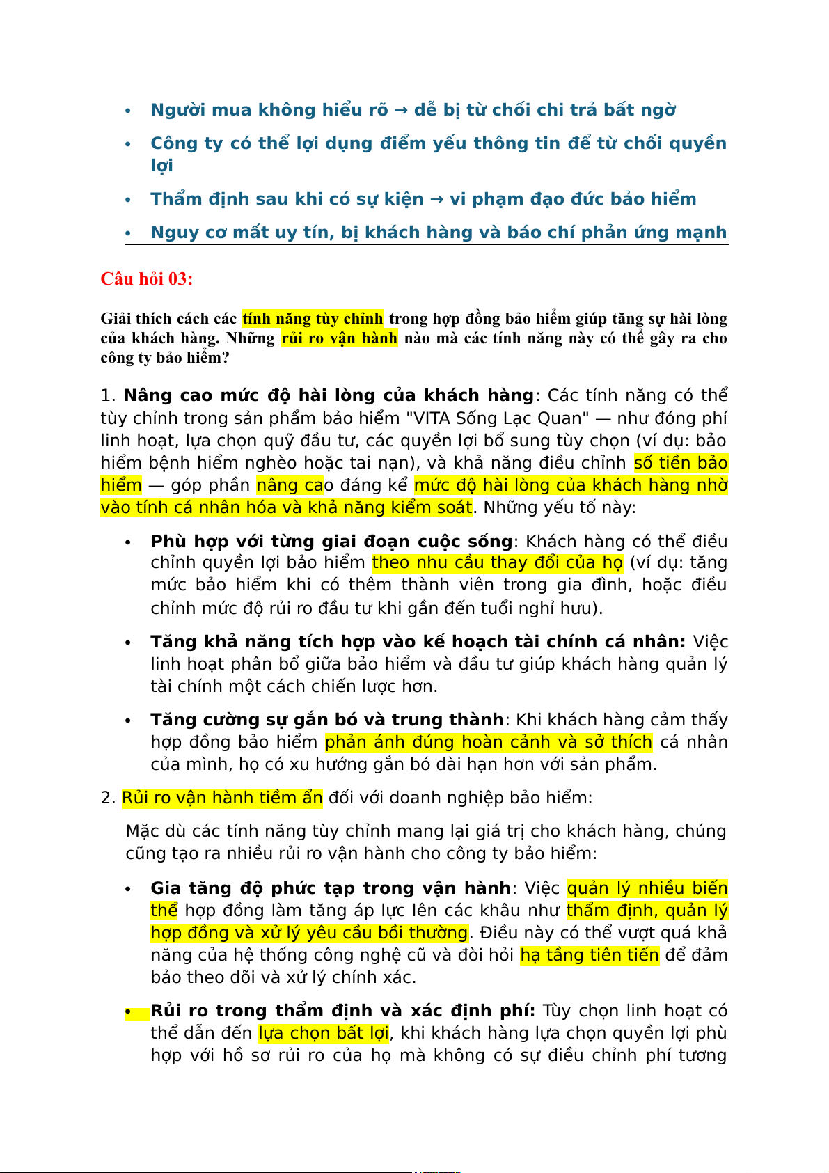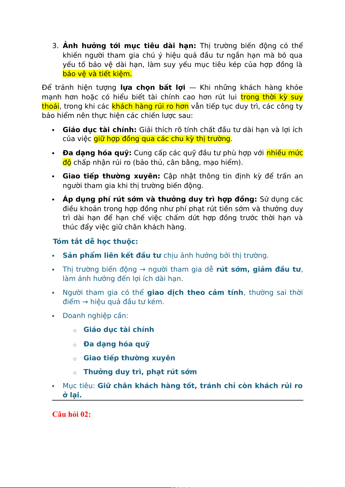 Mục tiêu: Giữ chân khách hàng tốt, tránh chỉ còn khách rủi ro ở lại. Câu hỏi 02: