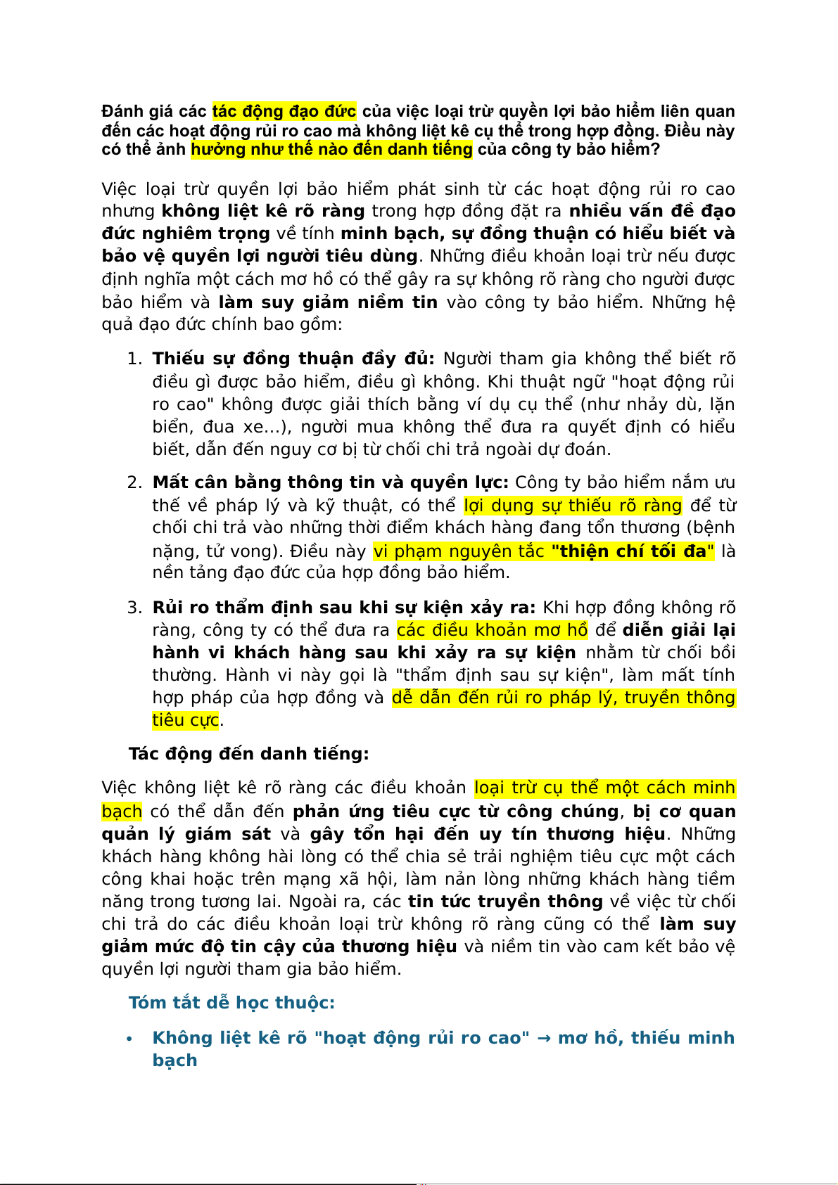 Đánh giá các tác động đạo đức của việc loại trừ quyền lợi bảo hiểm liên quan