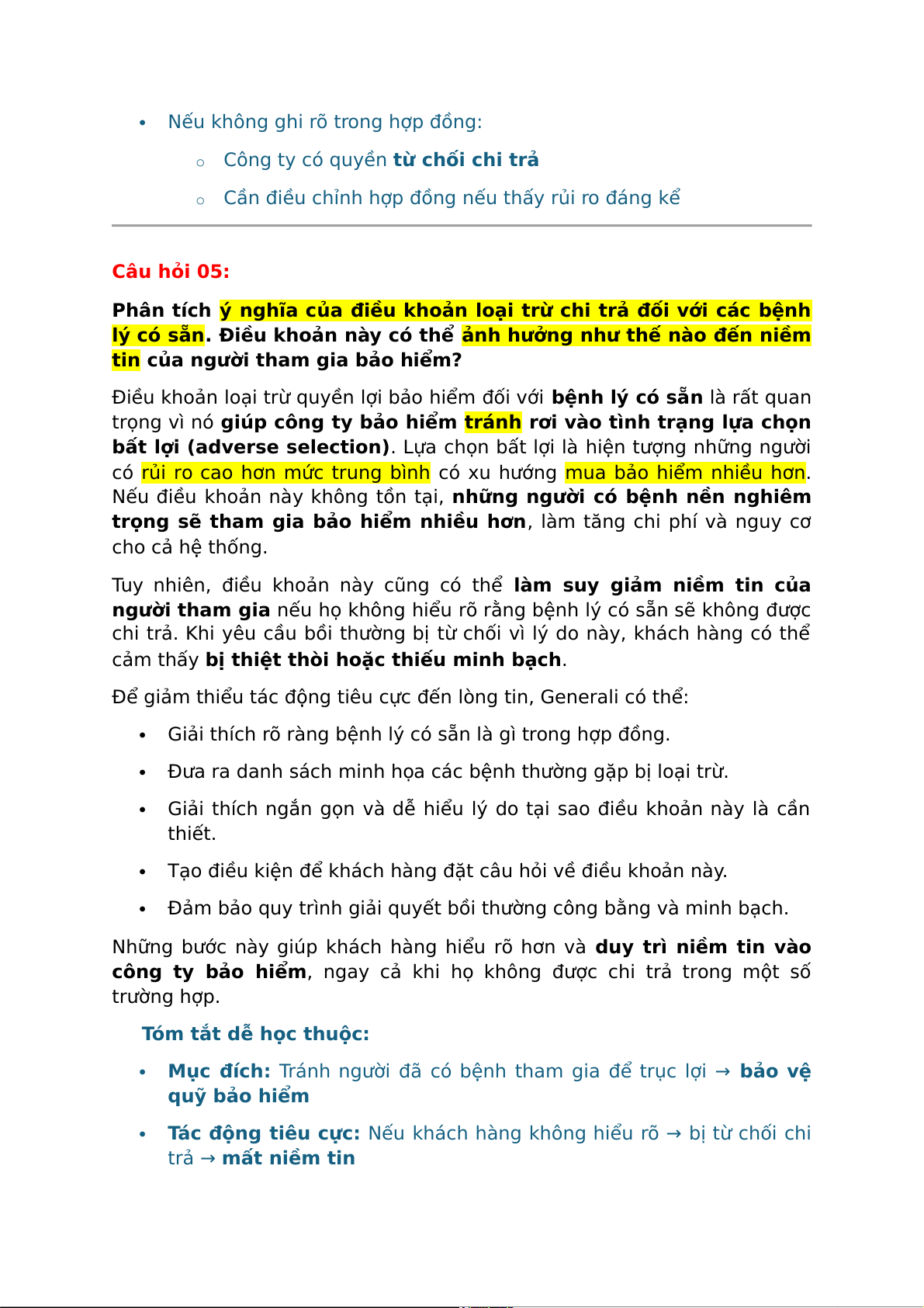 biết, dẫn đến nguy cơ bị từ chối chi trả ngoài dự đoán.