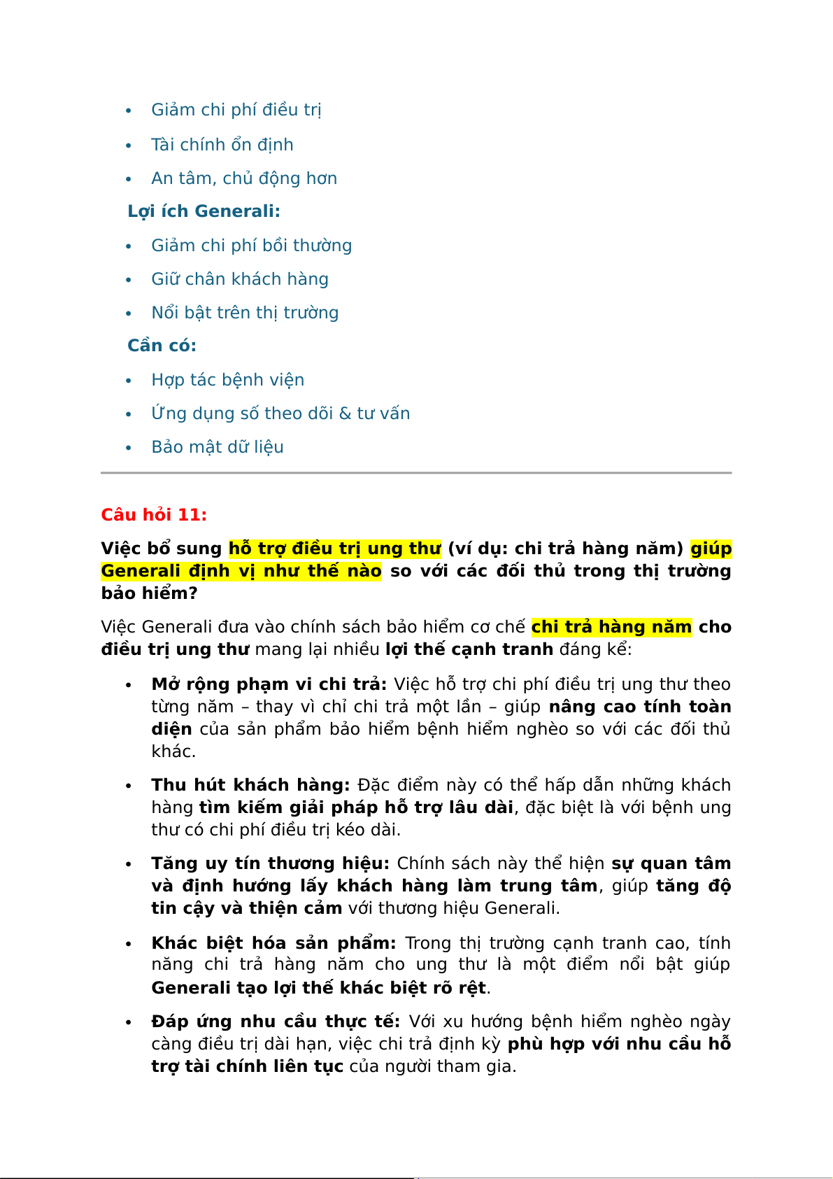 được bảo hiểm chi trả. Cơ hội tiềm năng: