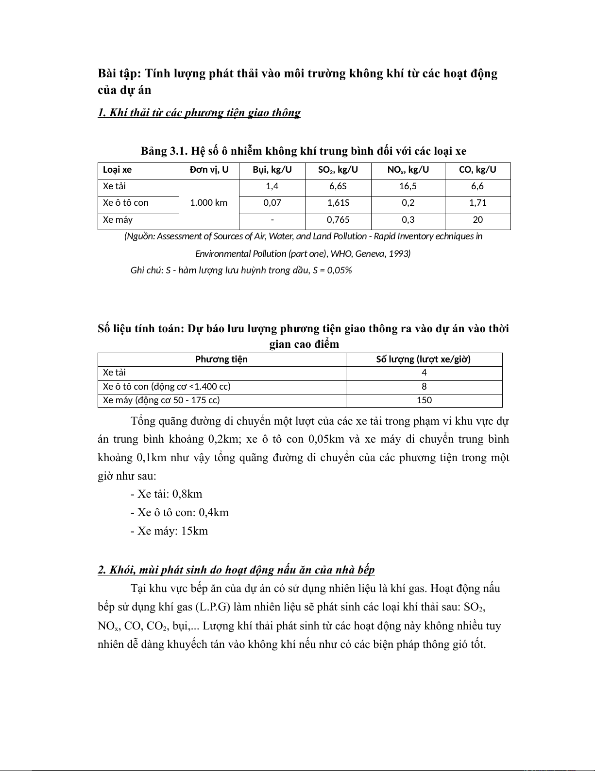 Bài tập: Tính lượng phát thải vào môi trường không khí từ các hoạt động của dự án 1.