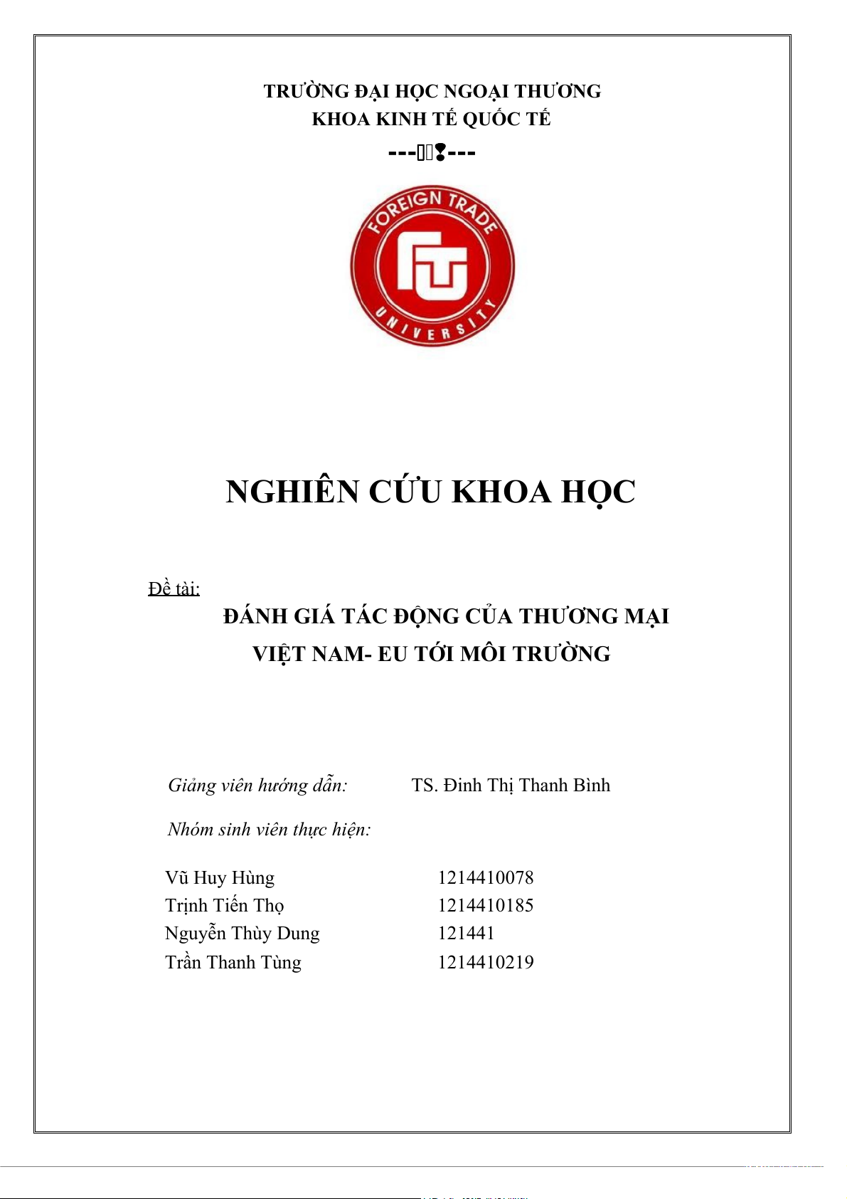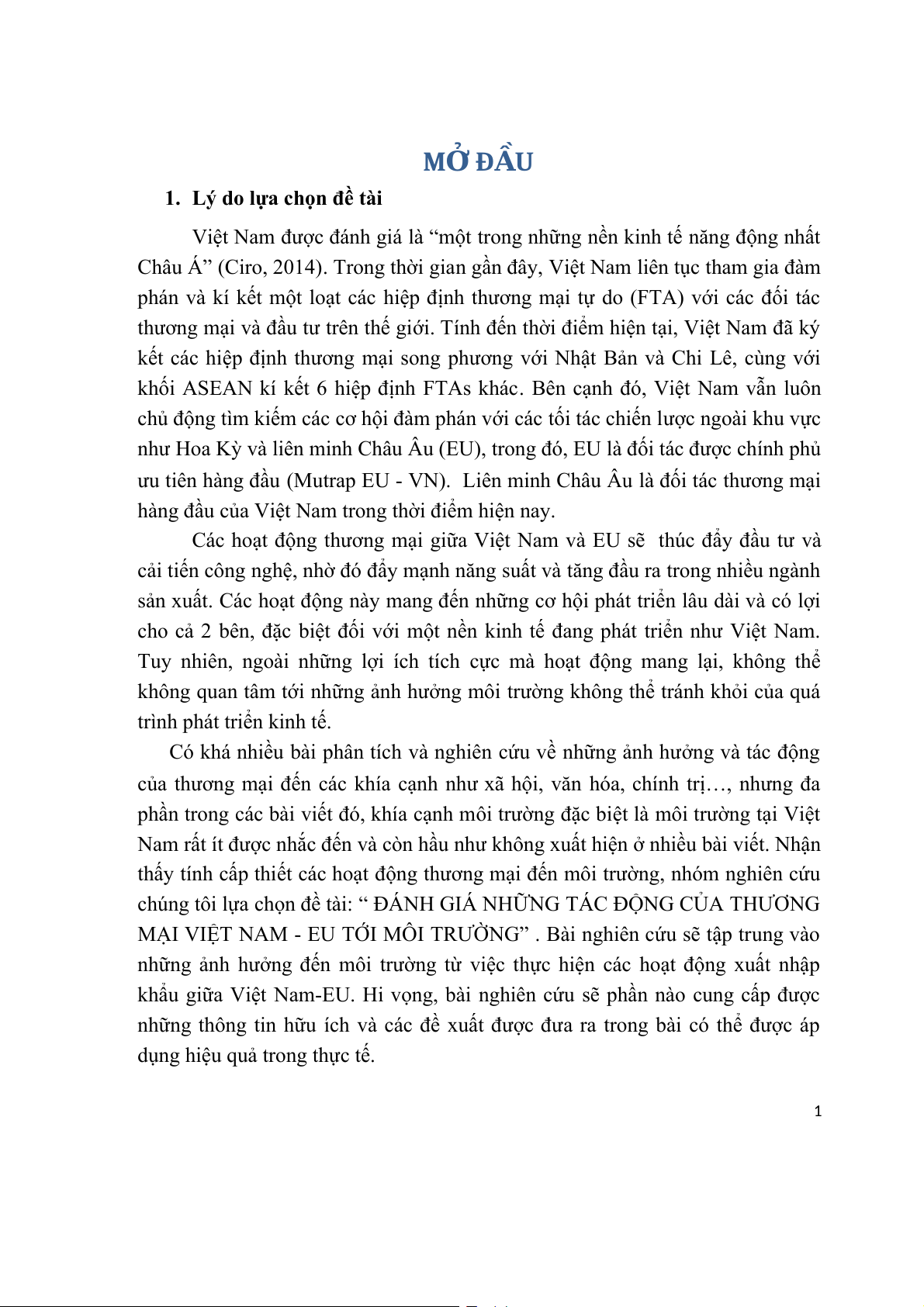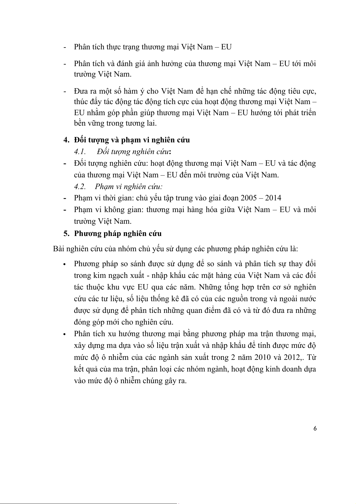 MẠI VIỆT NAM - EU TỚI MÔI TRƯỜNG” . Bài nghiên cứu sẽ tập trung vào