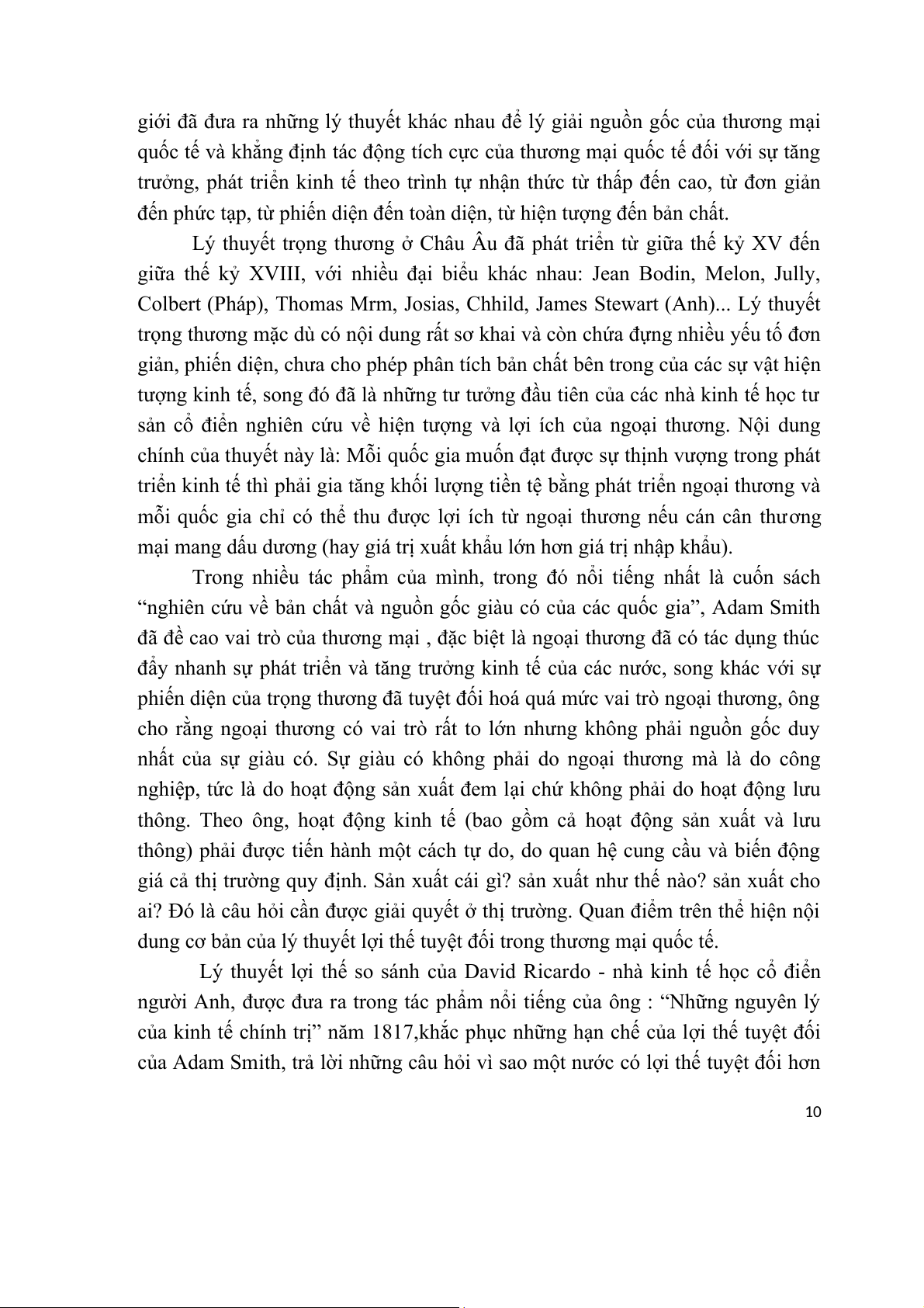 của Adam Smith, trả lời những câu hỏi vì sao một nước có lợi thế tuyệt đối hơn 10
