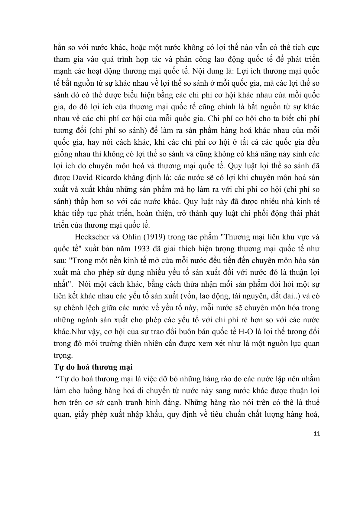 Heckscher và Ohlin (1919) trong tác phẩm "Thương mại liên khu vực và