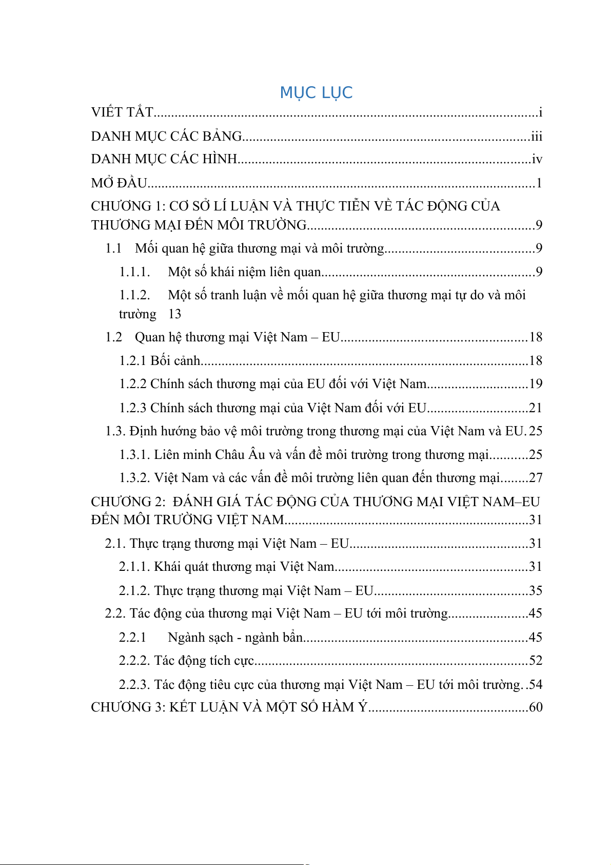 2.2.3. Tác động tiêu cực của thương mại Việt Nam – EU tới môi trường..54