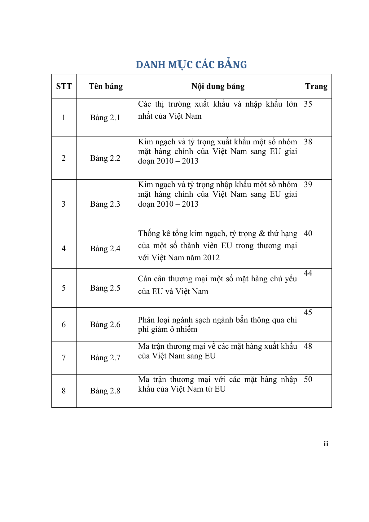 2.1.2. Thực trạng thương mại Việt Nam – EU............................................35