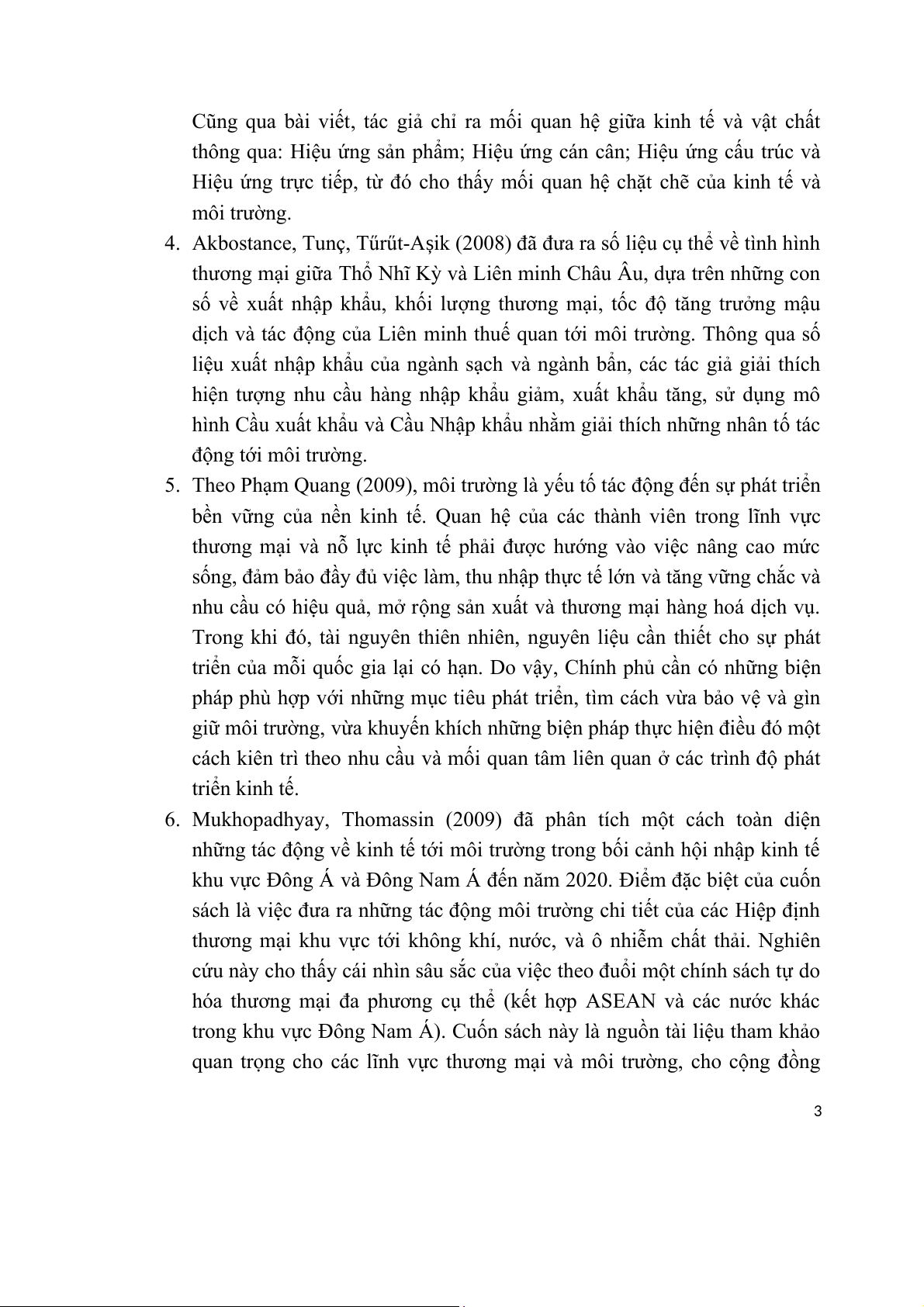 thấy tính cấp thiết các hoạt động thương mại đến môi trường, nhóm nghiên cứu