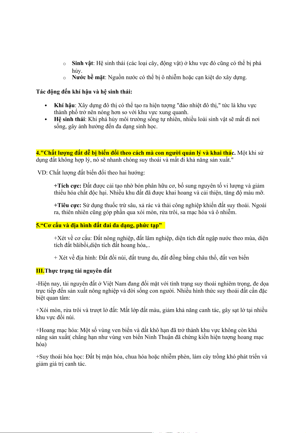 2."Đất là tài nguyên có hạn – diện tích trên mỗi vùng lãnh thổ không thể mở rộng. Ở Việt Nam,