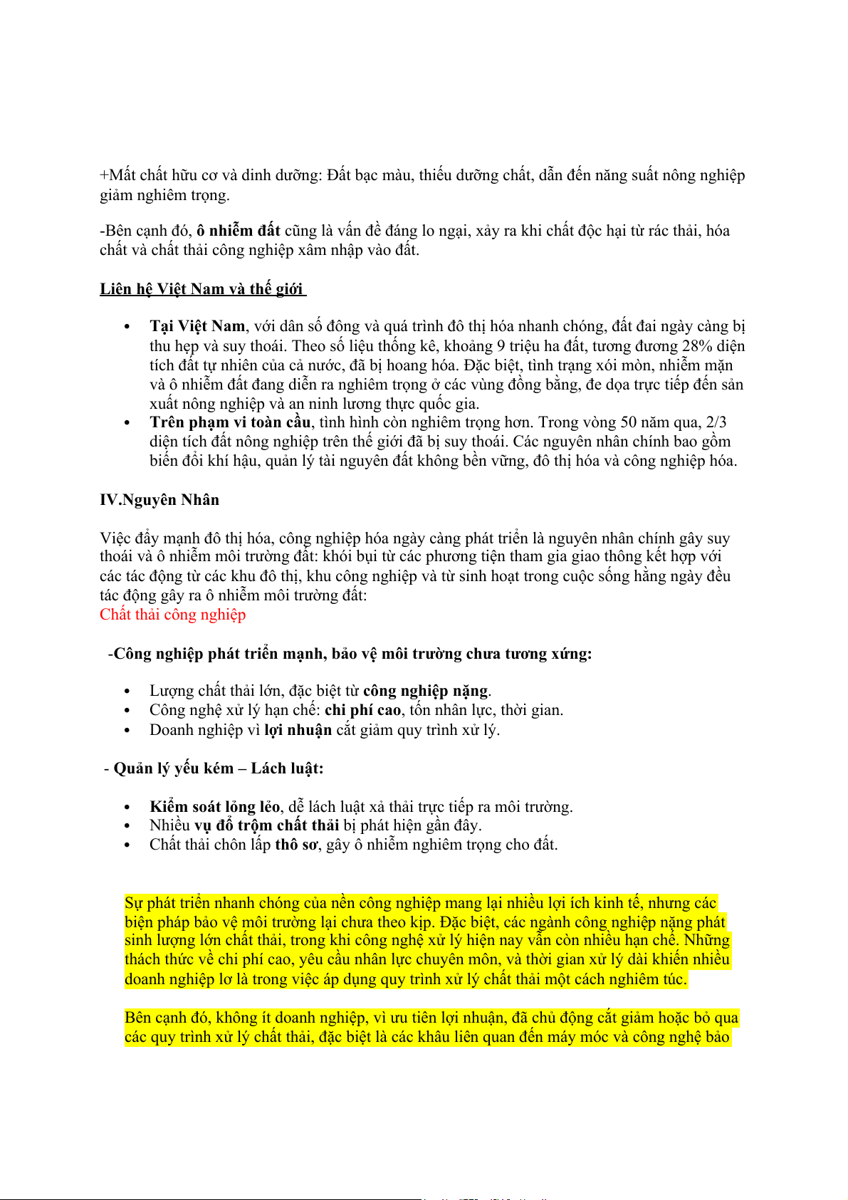 biến đổi khí hậu, quản lý tài nguyên đất không bền vững, đô thị hóa và công nghiệp hóa. IV.Nguyên Nhân