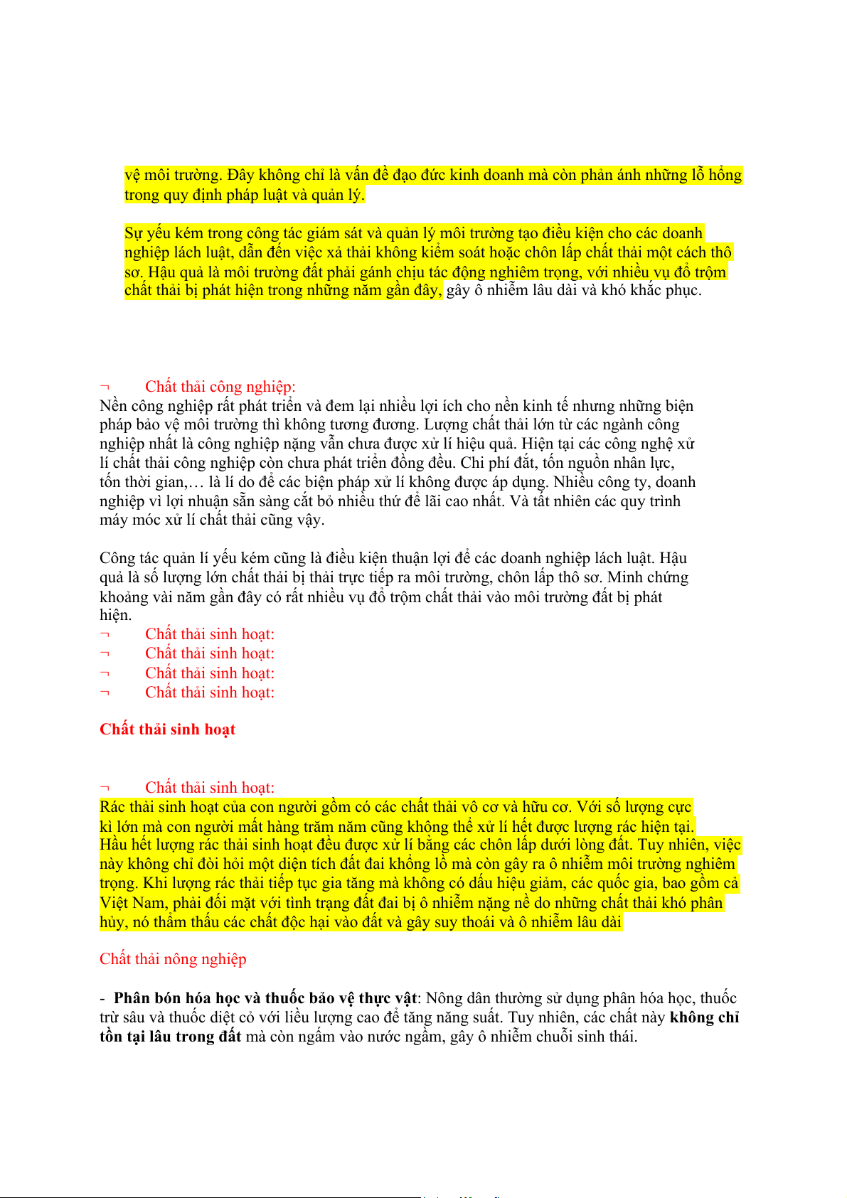 khoảng vài năm gần đây có rất nhiều vụ đổ trộm chất thải vào môi trường đất bị phát hiện. Chất thải sinh hoạt: Chất thải sinh hoạt: Chất thải sinh hoạt: Chất thải sinh hoạt: