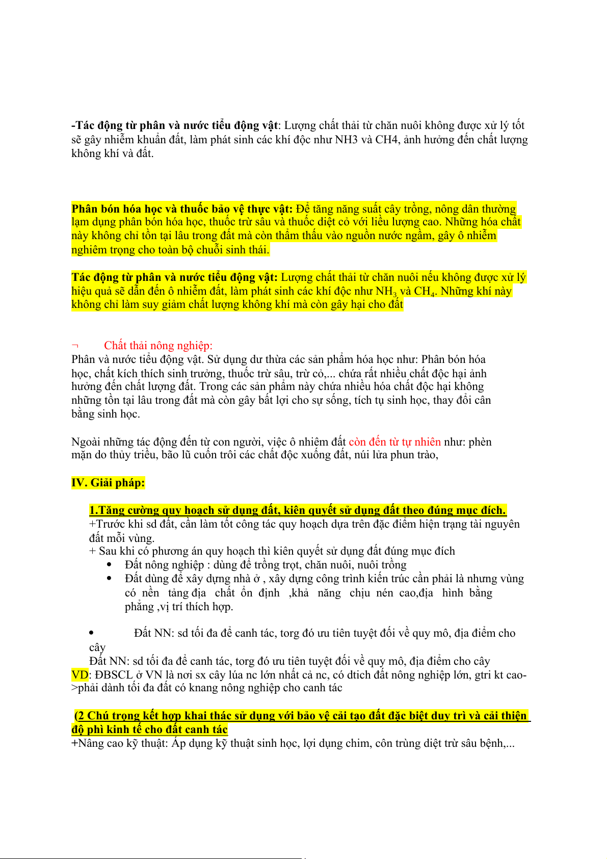 +Tiêu cực: Sử dụng thuốc trừ sâu, xả rác và thải công nghiệp khiến đất suy thoái. Ngoài