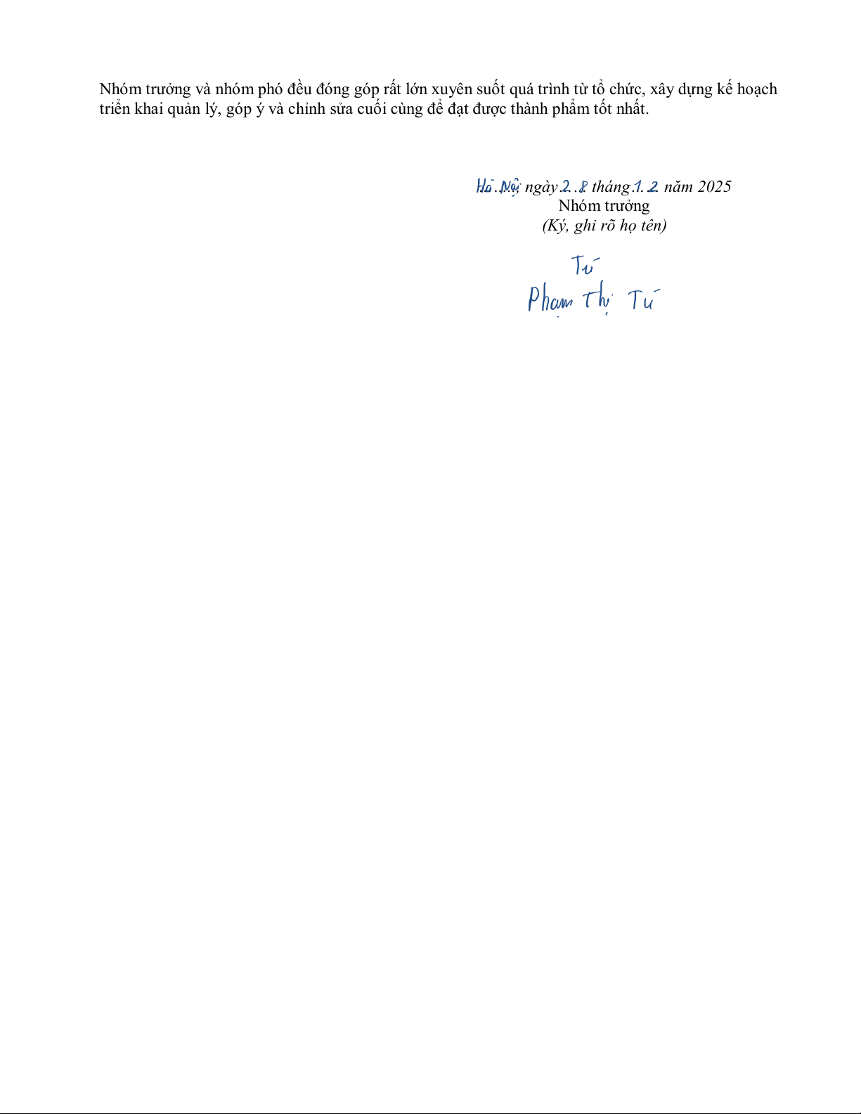 …….., ngày…… tháng…… năm 2025 Nhóm trưởng