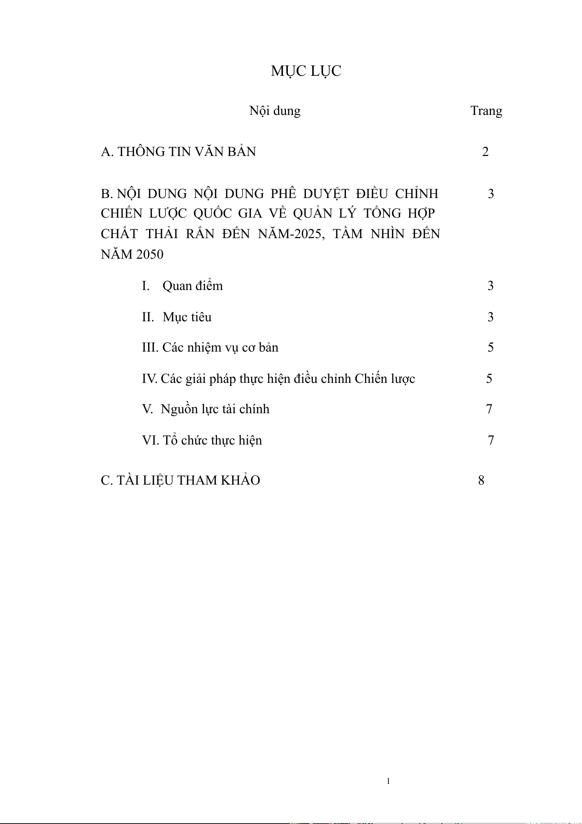 IV. Các giải pháp thực hiện điều chỉnh Chiến lược 5 V. Nguồn lực tài chính 7 VI. Tổ chức thực hiện 7 C. TÀI LIỆU THAM KHẢO 8 1
