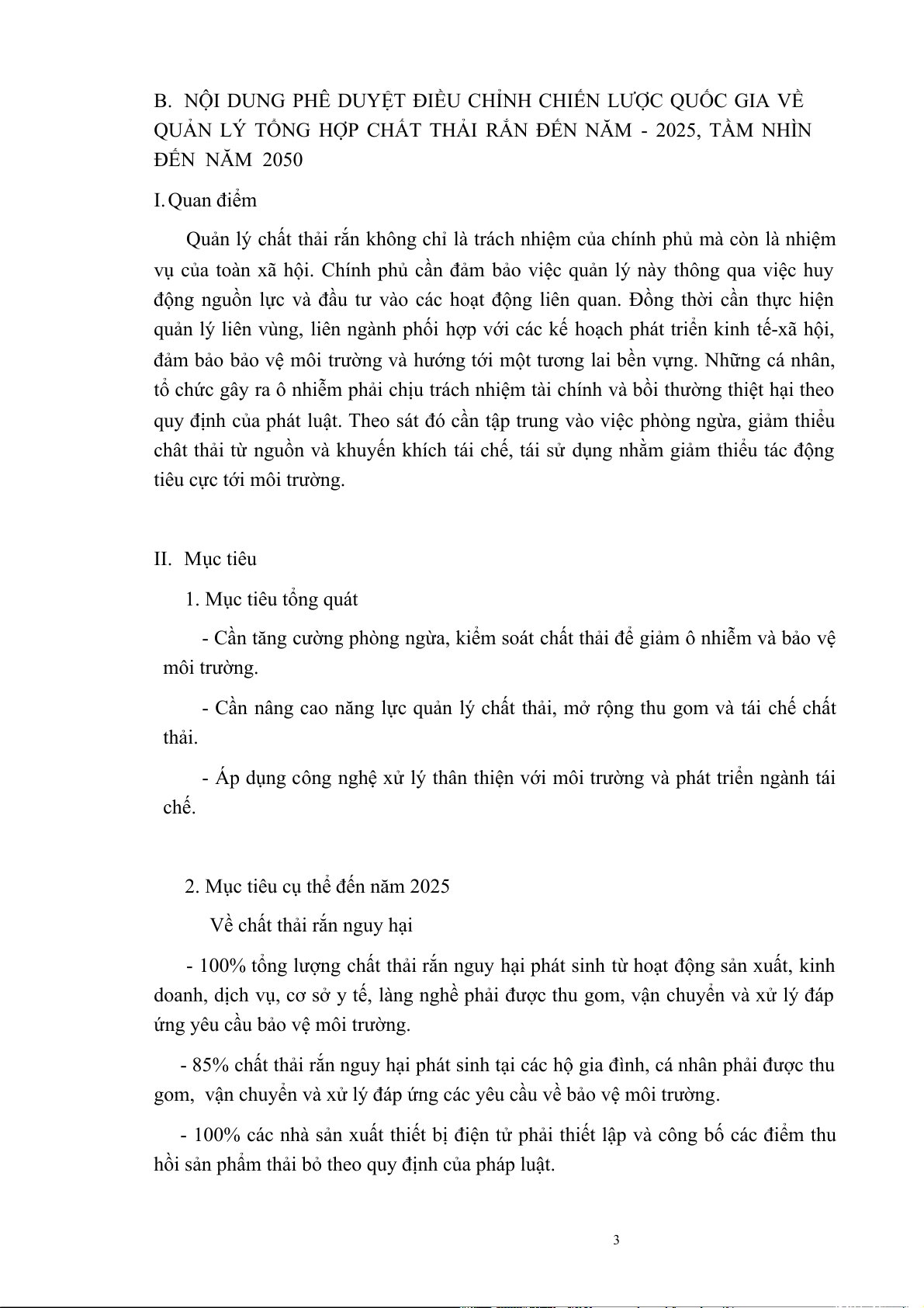 CHẤT THẢI RẮN ĐẾN NĂM-2025, TẦM NHÌN ĐẾN NĂM 2050 I. Quan điểm 3 II. Mục tiêu 3