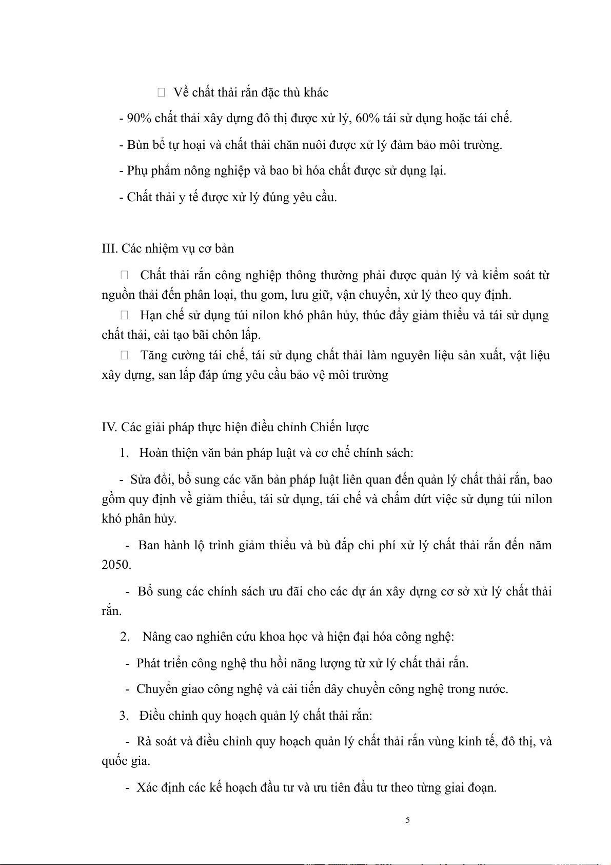 - Ban hành lộ trình giảm thiểu và bù đắp chi phí xử lý chất thải rắn đến năm 2050.